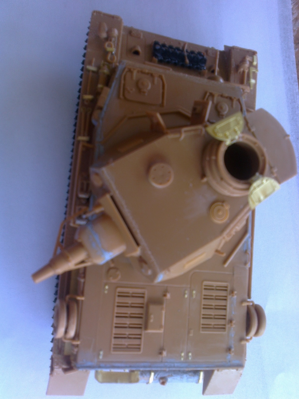 ?Какая шероховатость?.Если кому-то что-то не нравится,пусть с начала посмотрит,как выглядел настоящий танк,а потом уже дает советы. http://www.cybermodeler.com/armor/pzkpf ... er4_02.jpg Все там гладко,как попа у младенца.Не надо ничего покупать.Там где Вы зашпаклевали кожух на стыке,есть сварной шов.На модефикации D он был точно.F1 шел после нее,так что должен быть.Сейчас все не упомню,надо заглянуть в умную книгу.