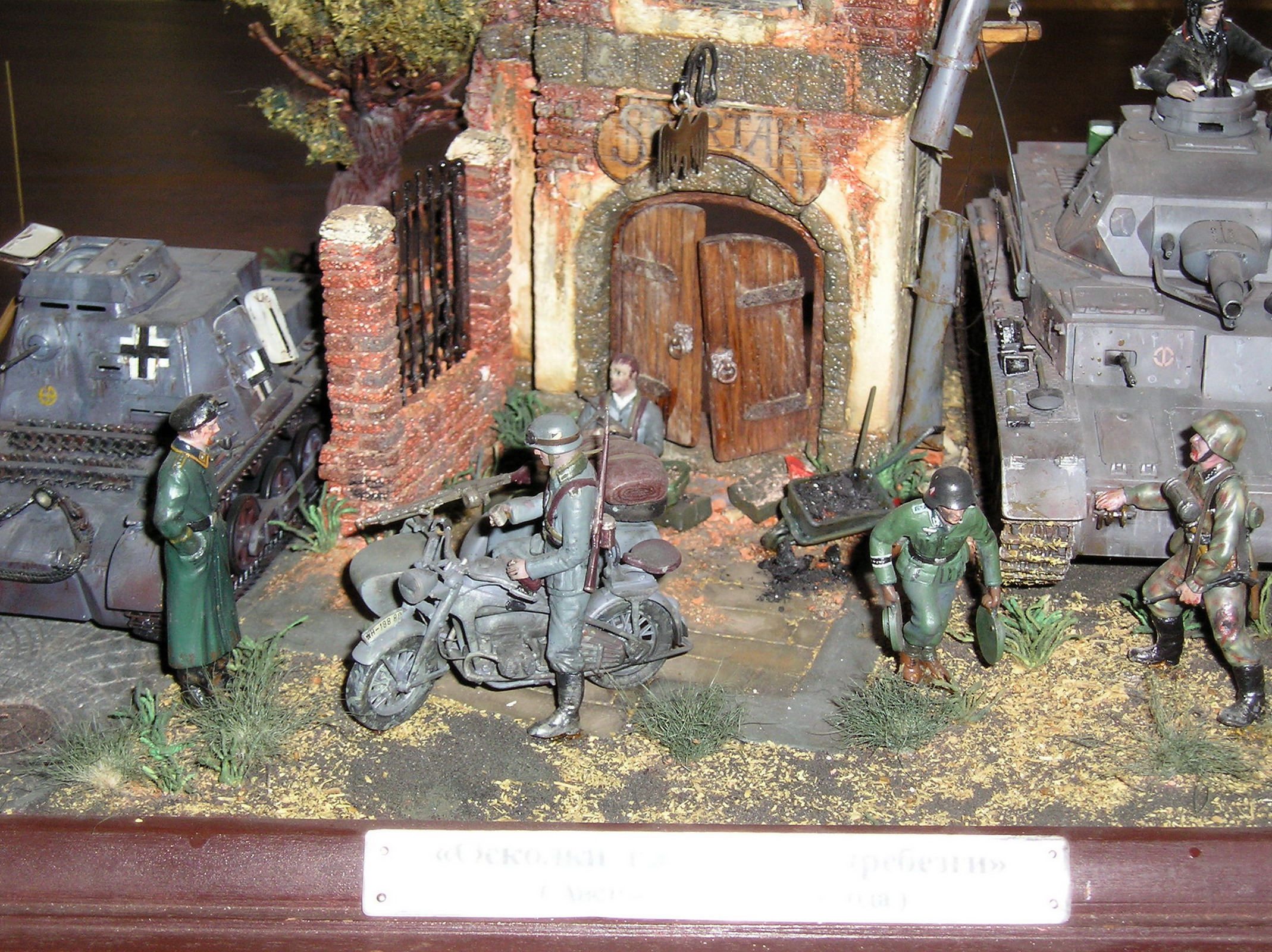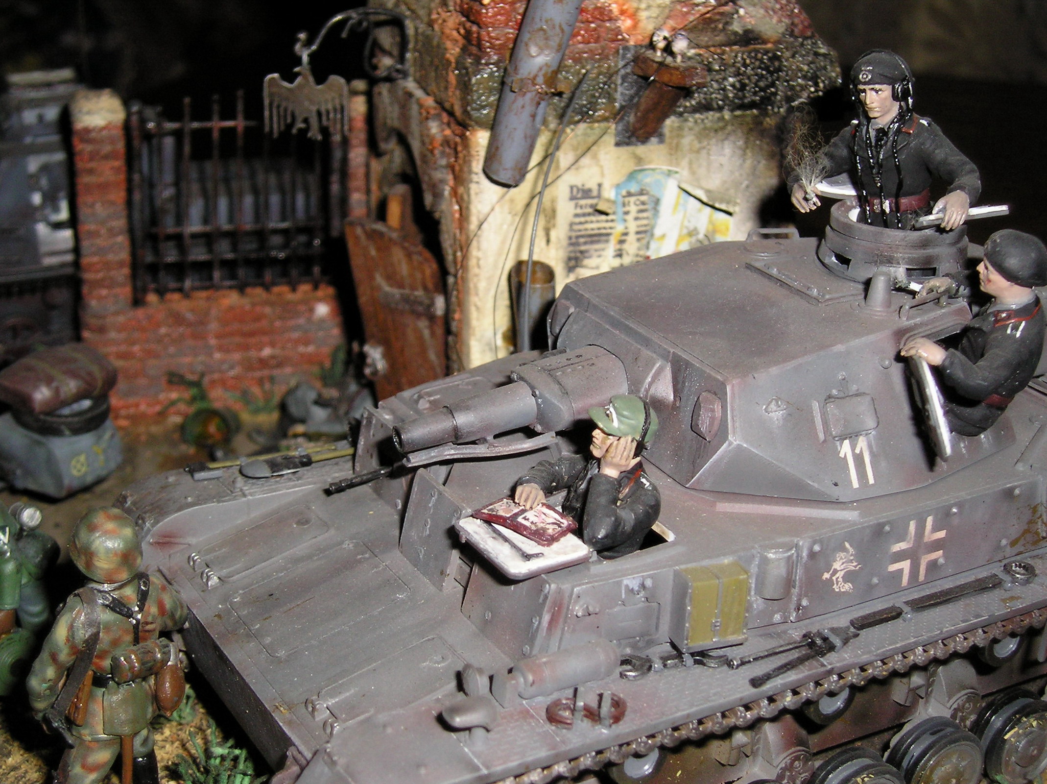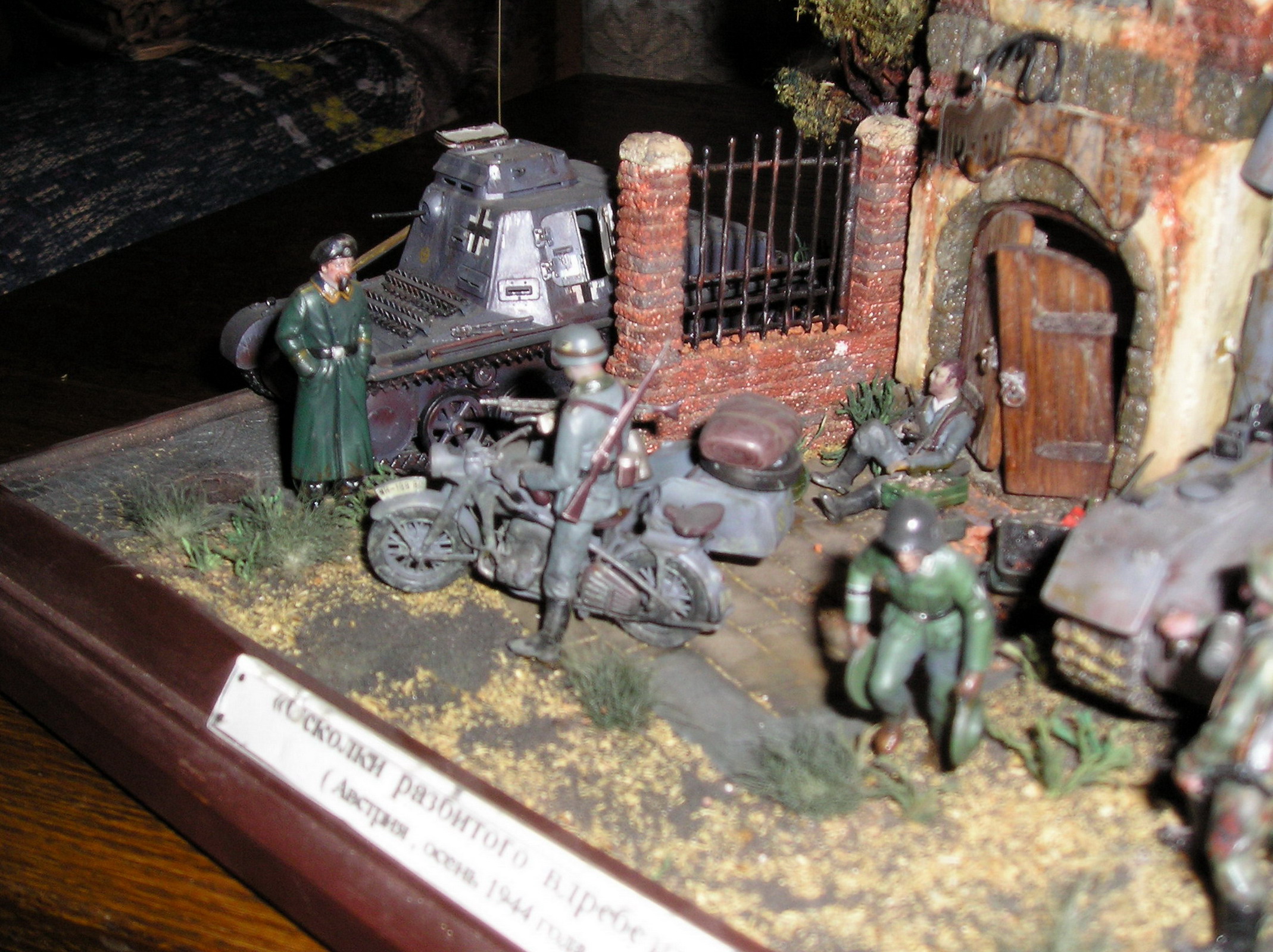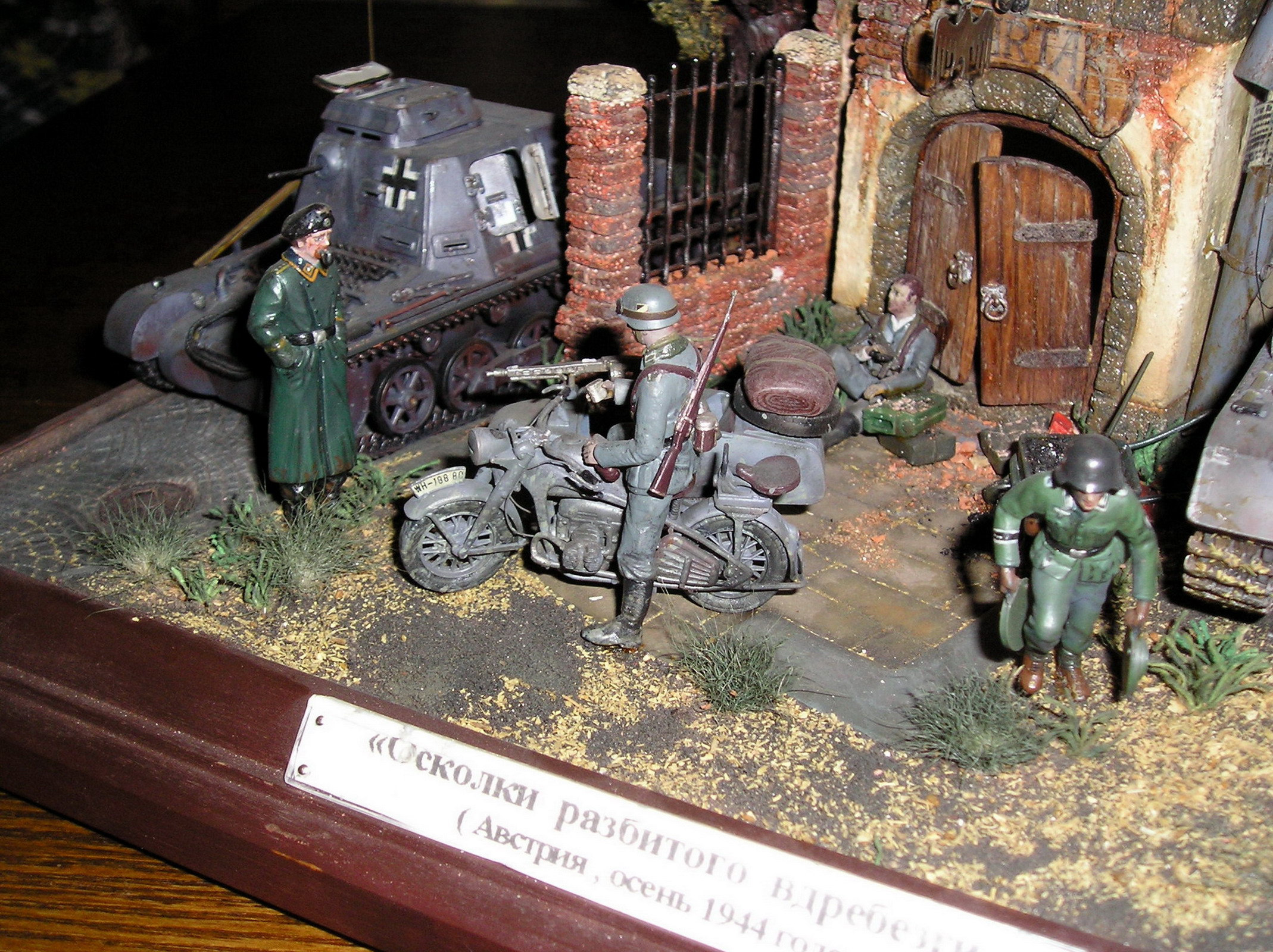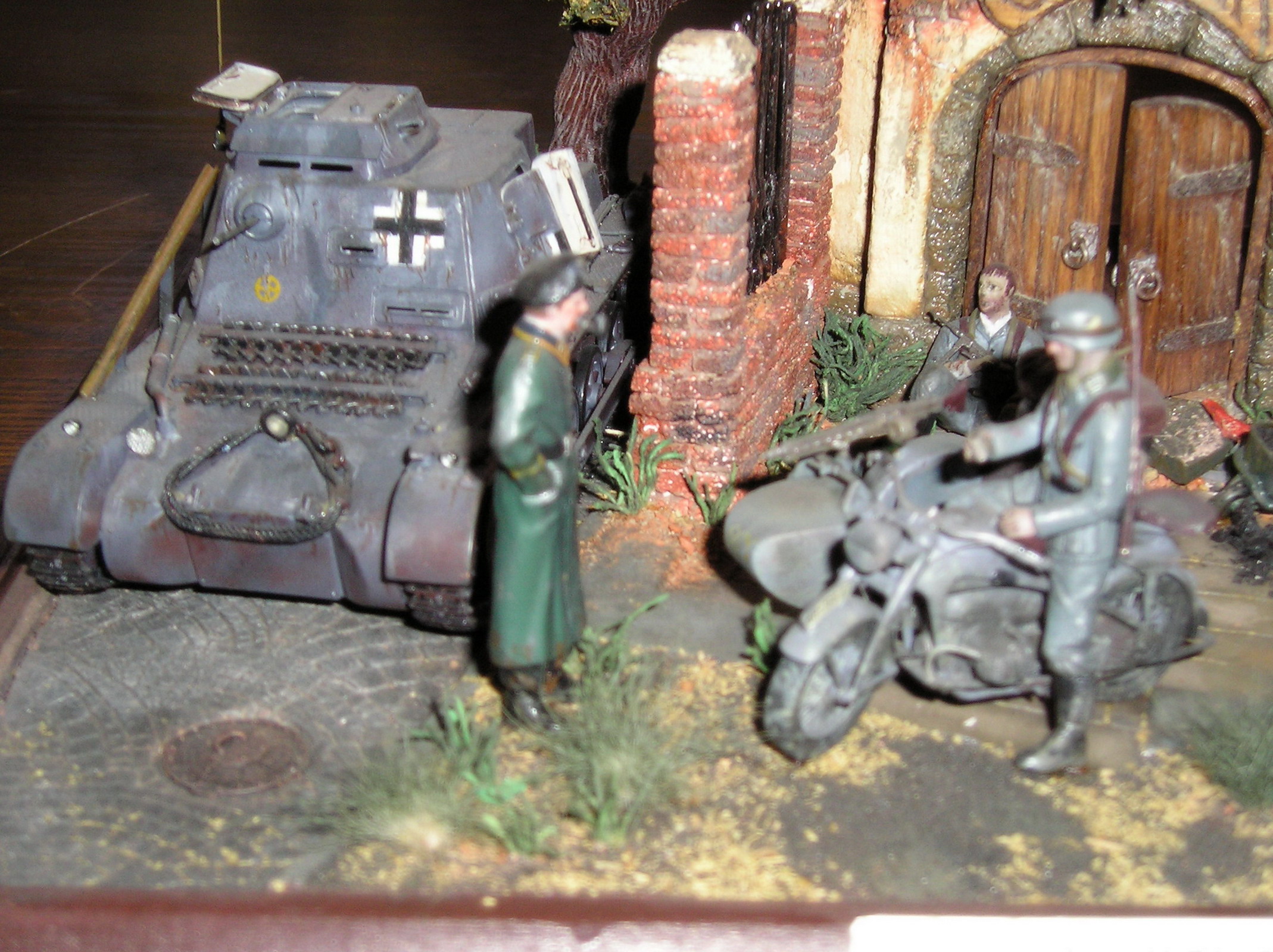 На мой взгляд, главный недостаток (к счастью, он очень легко устраним) - историческая привязка. Конечно, в тылу (которым и была Австрия осенью 1944-го) в учебных частях могли уцелеть Pz.I и Pz.IVD. Однако, вряд ли они сохранили бы серую окраску, существовавшую до весны 1943-го. Это же касается и мотоцикла. И несколько неуместными выглядят на этих устаревших танках эмблемы 11-й и 13-й танковых дивизий (кстати, в указанный период первая отступала во Франции, а вторая была почти полностью разгромлена на юге Украины). "Восточный фронт 1941(42)" - подошло бы больше.