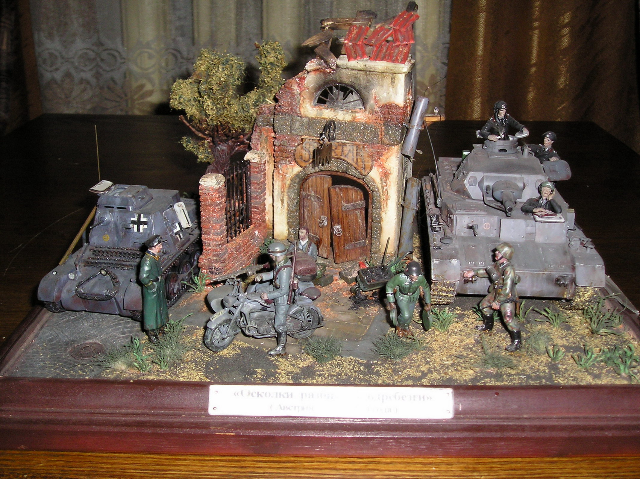 Благодарю за отзывы.Данная диорама действительно первая и достаточно давняя - 2002 г., чем, надеюсь и объясняются справедливо указанные недостатки. Что касается блеска, то в те далекие годы красок нормальных не было, мешал сам различную нитру. Теперь почему Австрия - видел на одной фотографии похожий деревенский кабачок, маленький и симпатичный, захотелось воспроизвести.