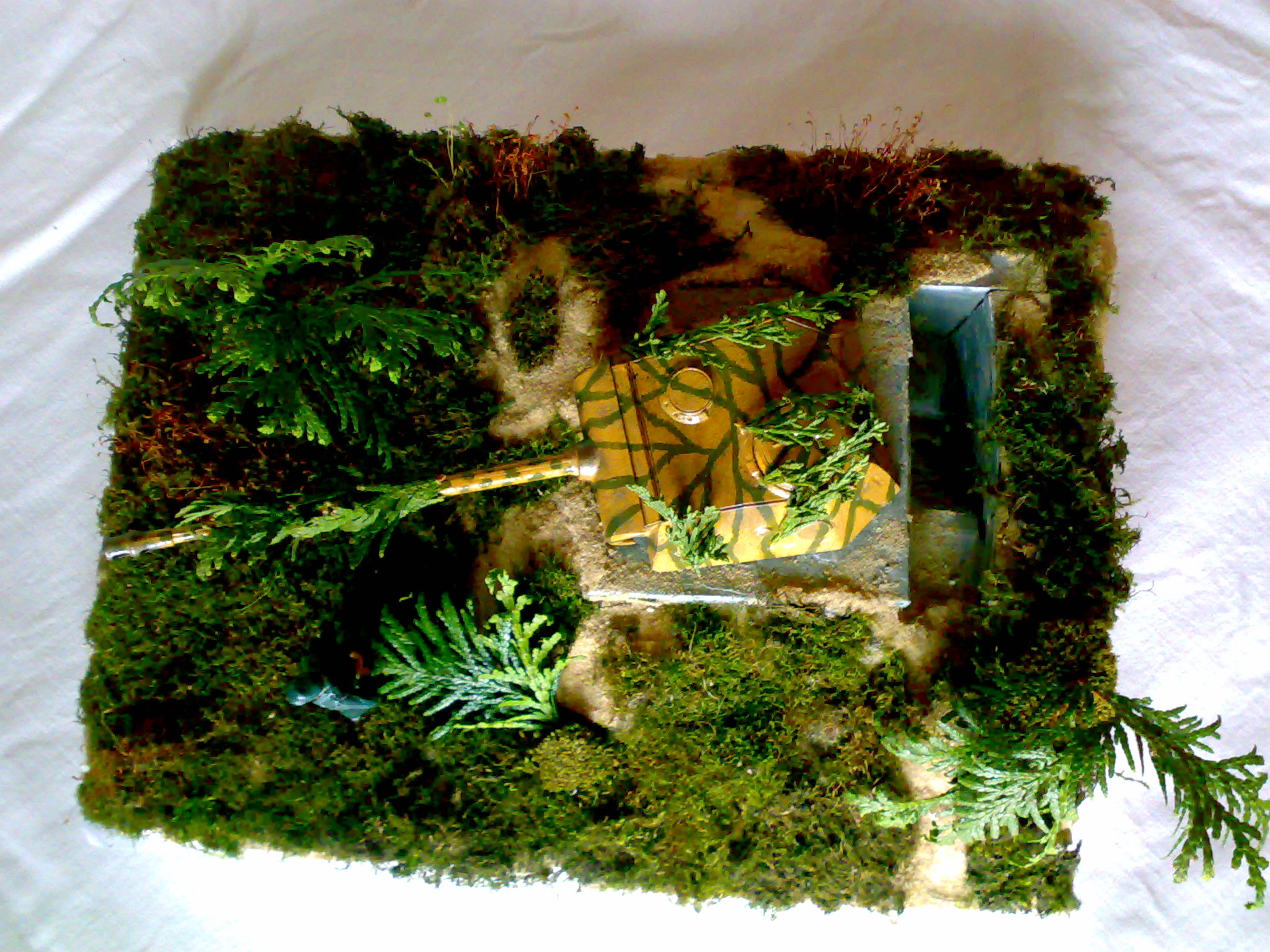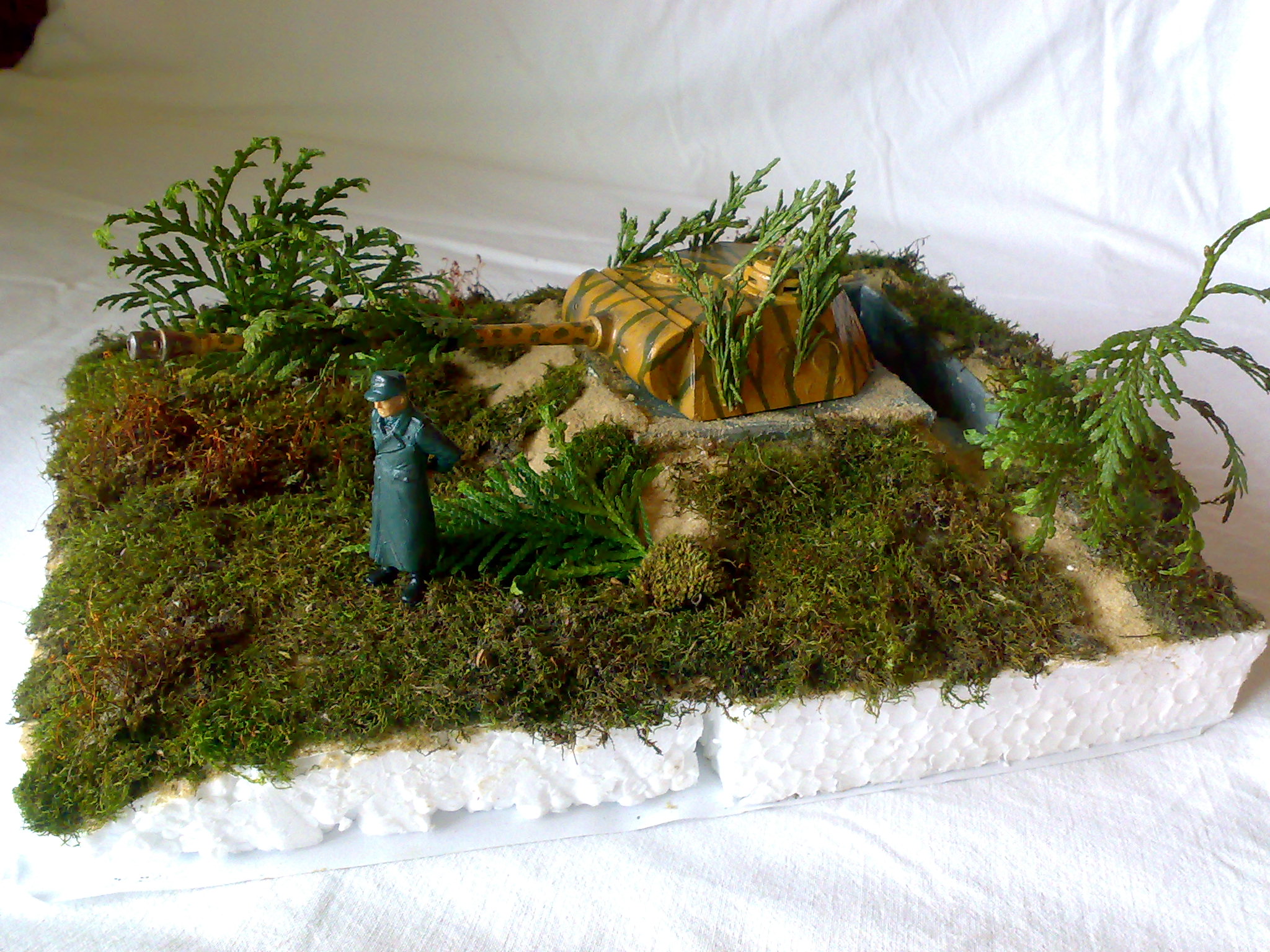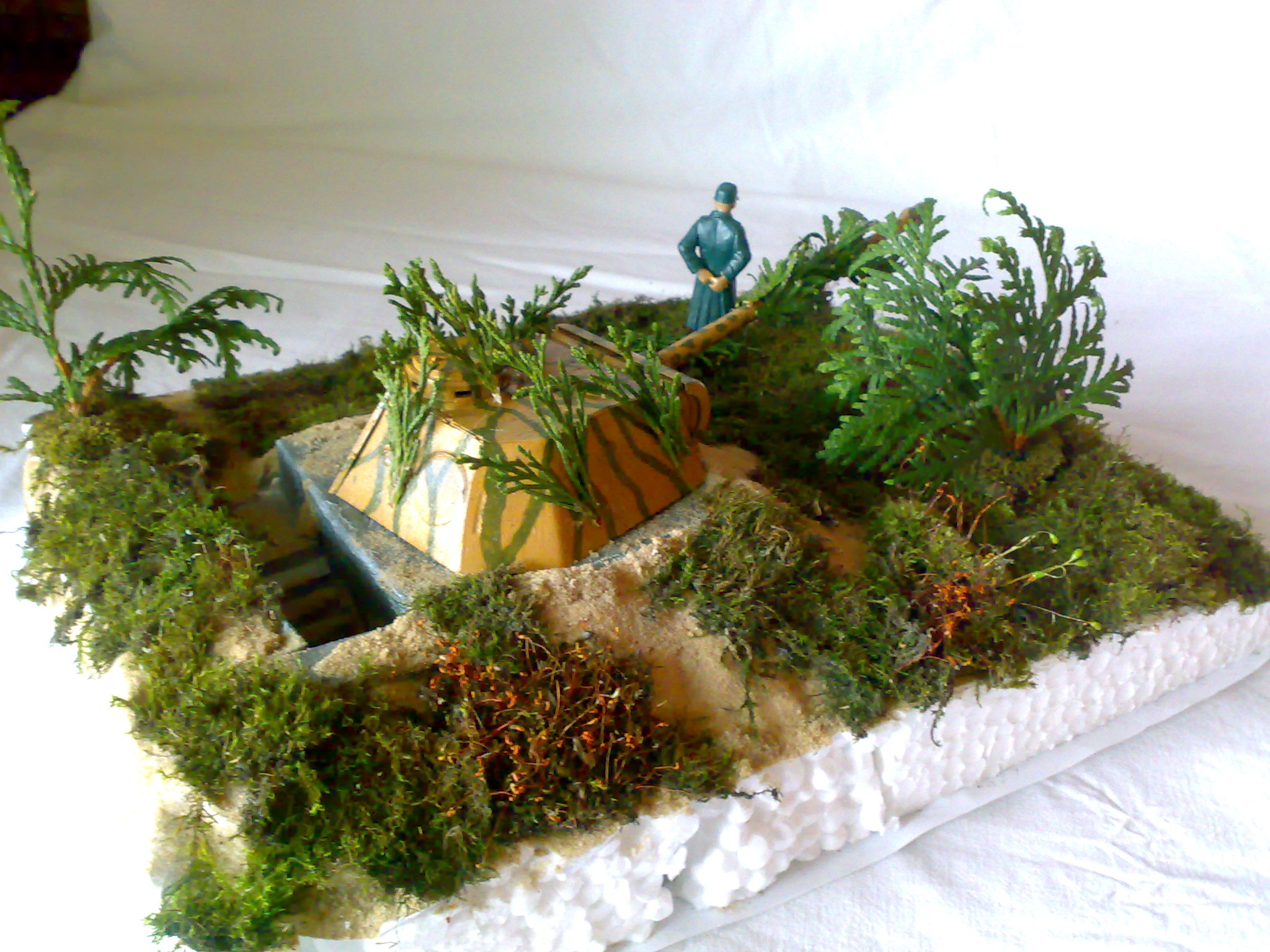 Растительность.На земле более менее что-то похоже на траву,но ветки с листьями напоминают что-то резиновое.И к диорамам надо подходить чательнее.Начинать лучше с малого.Одна фигурка,один танк,маленькая виньетка и т.д и т.п.