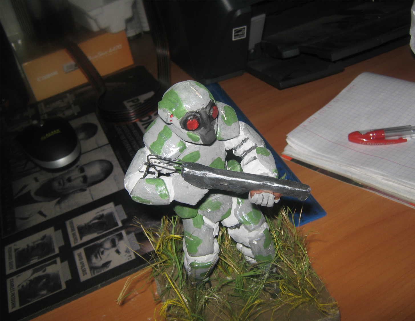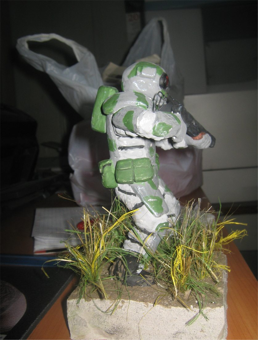 Это моя первая работа поэтому прошу тапками не бить. Материал - гипс. Ксраска - гуаш, разведенная на ПВА. Фигурка сделана мной с "нуля" Масштаб не соблюдал. Готов выслушать критику.