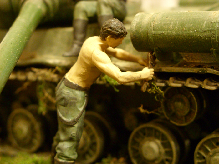 В этой небольшой сценке я хотел изобразить лето 1944г. Как немецкие механики наткнулись на советский танк ИС-2 и недолго думая, начали искать проблему в поломке этой машины, чтобы в дальнейшем присвоить её себе и использовать против советских войск.