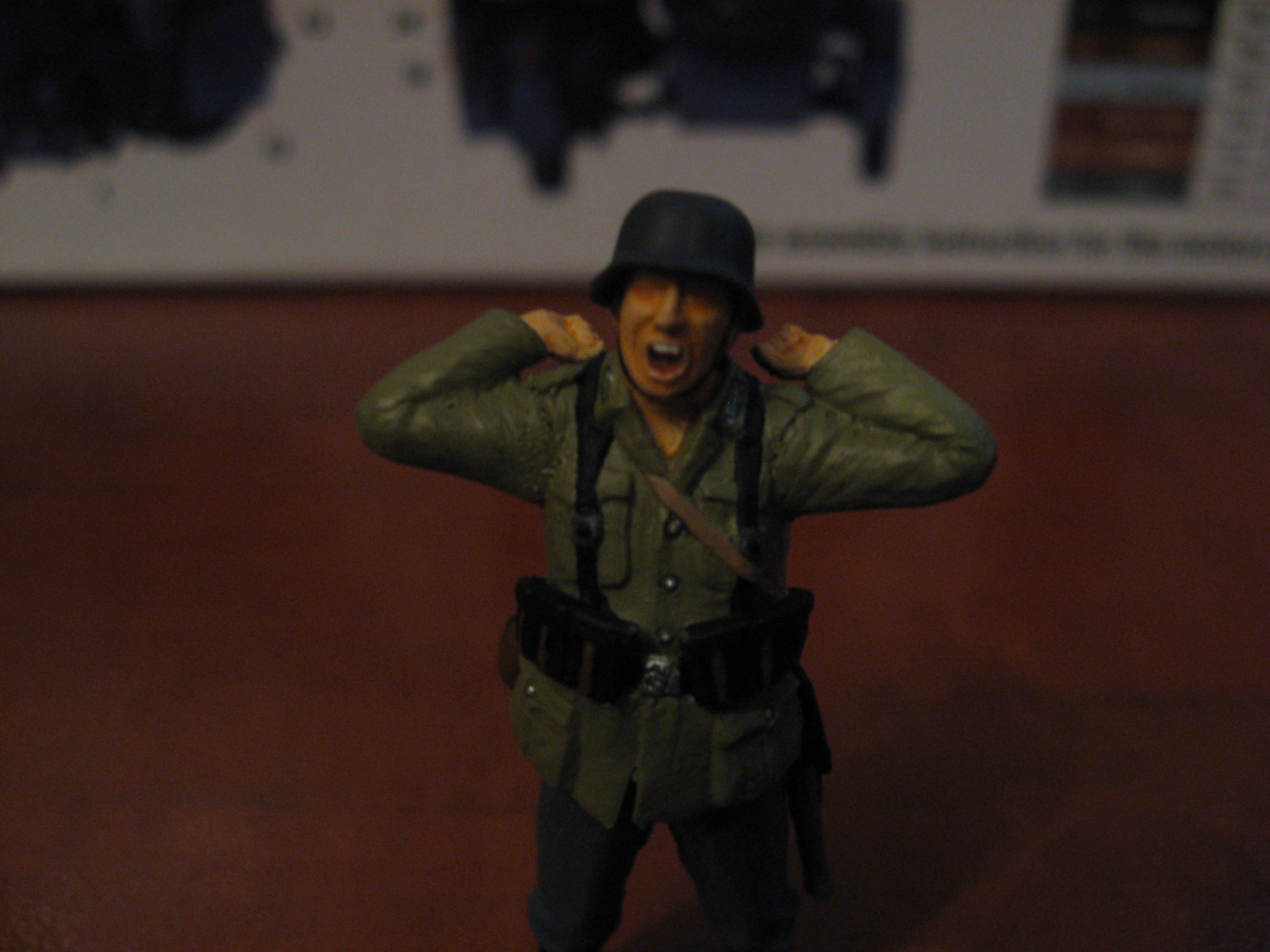 Да,вопрос: что за краска??особенно телесный цвет и китель,такое ощущение что она с комочками какими-то,разбовляйте краски пожиже,а то как хреновая штукатурка,вот-вот с фигуры осыпятся