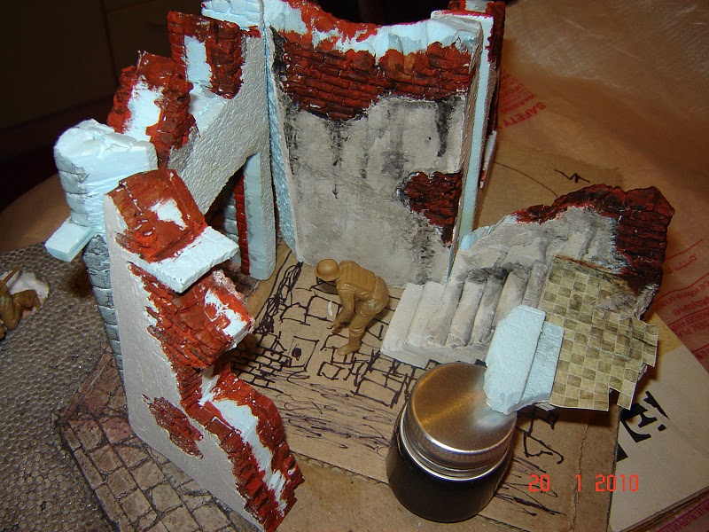 Я начал свой первый диорамы. Она покажет немецкие солдаты пытались сделать коммуникационную связь в пригороде Сталинграда. Я буду использовать фигурки из Masterbox (Masterbox: немецкий Сигнал персонала (MB # 3540)), масштаб 1:35.