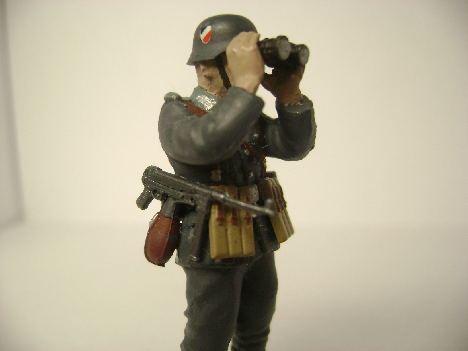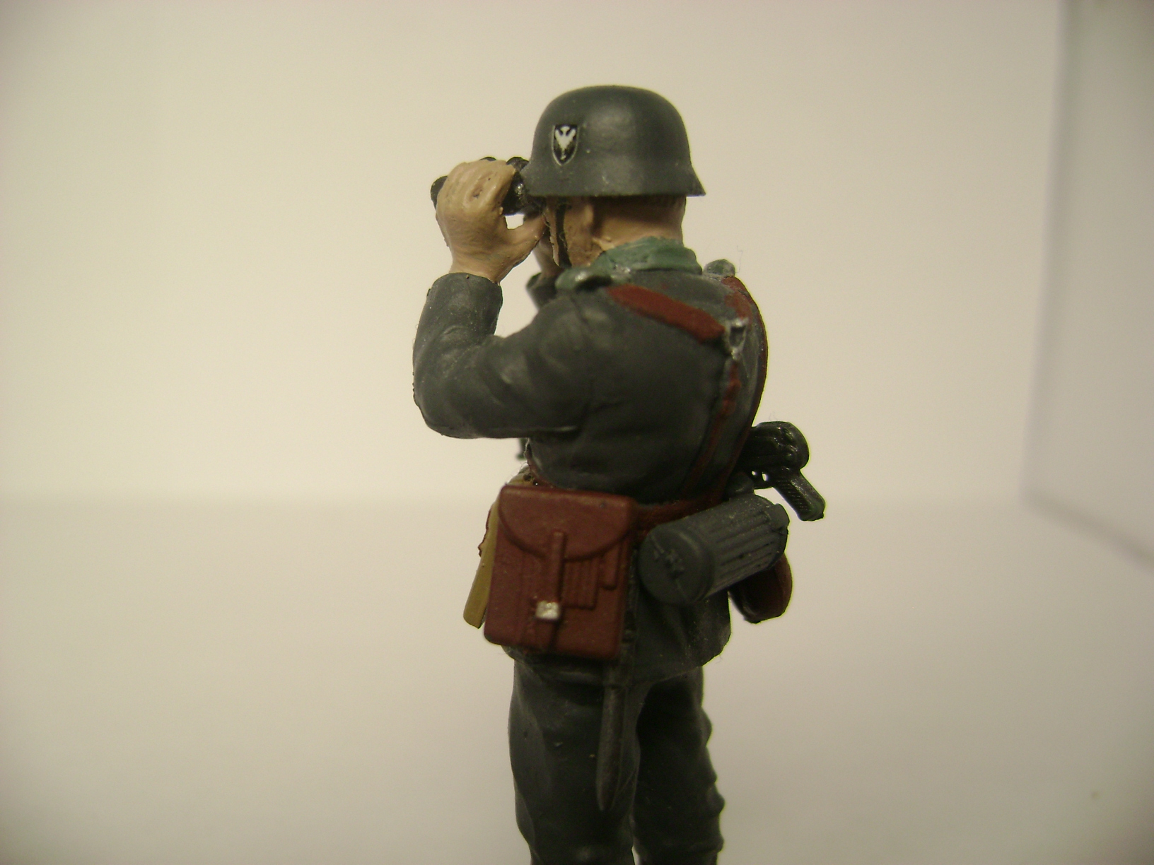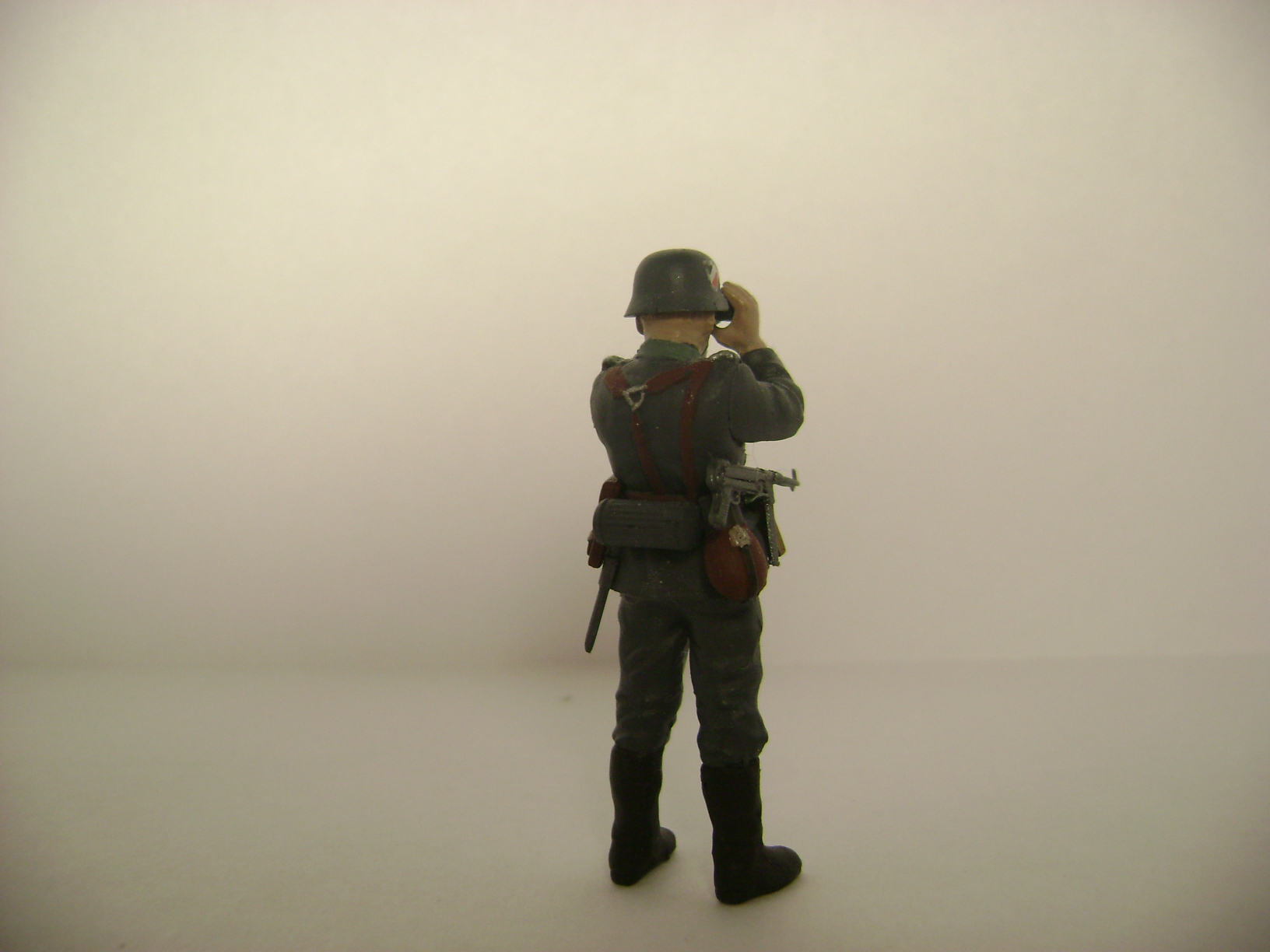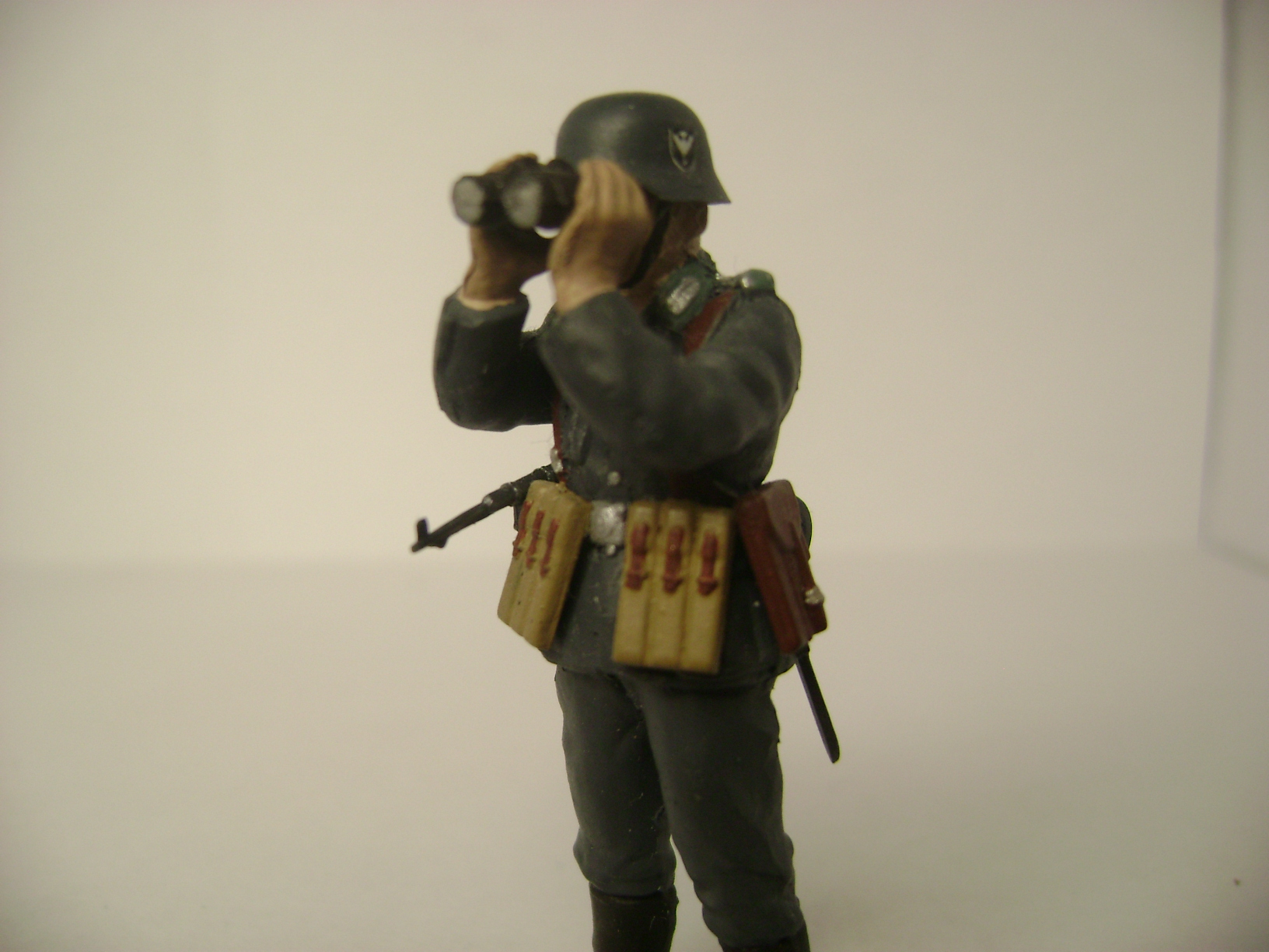 Для первой работы достаточно хорошо. Из того, над чем вам следует поработать в ближайшее время - обязательно зачищайте швы от стыков пресс-форм на деталях(они у вас и на противогазной коробке, и на фляге, и на сапогах); учитесь класть краску тонким слоем. Бинокль можно высверлить и залить стекла глянцевым лаком. Ну и стараться прописывать мелочи (канты, петлицы, пряжки и т.п.) - сразу не придет, тут только практика. Удачи!