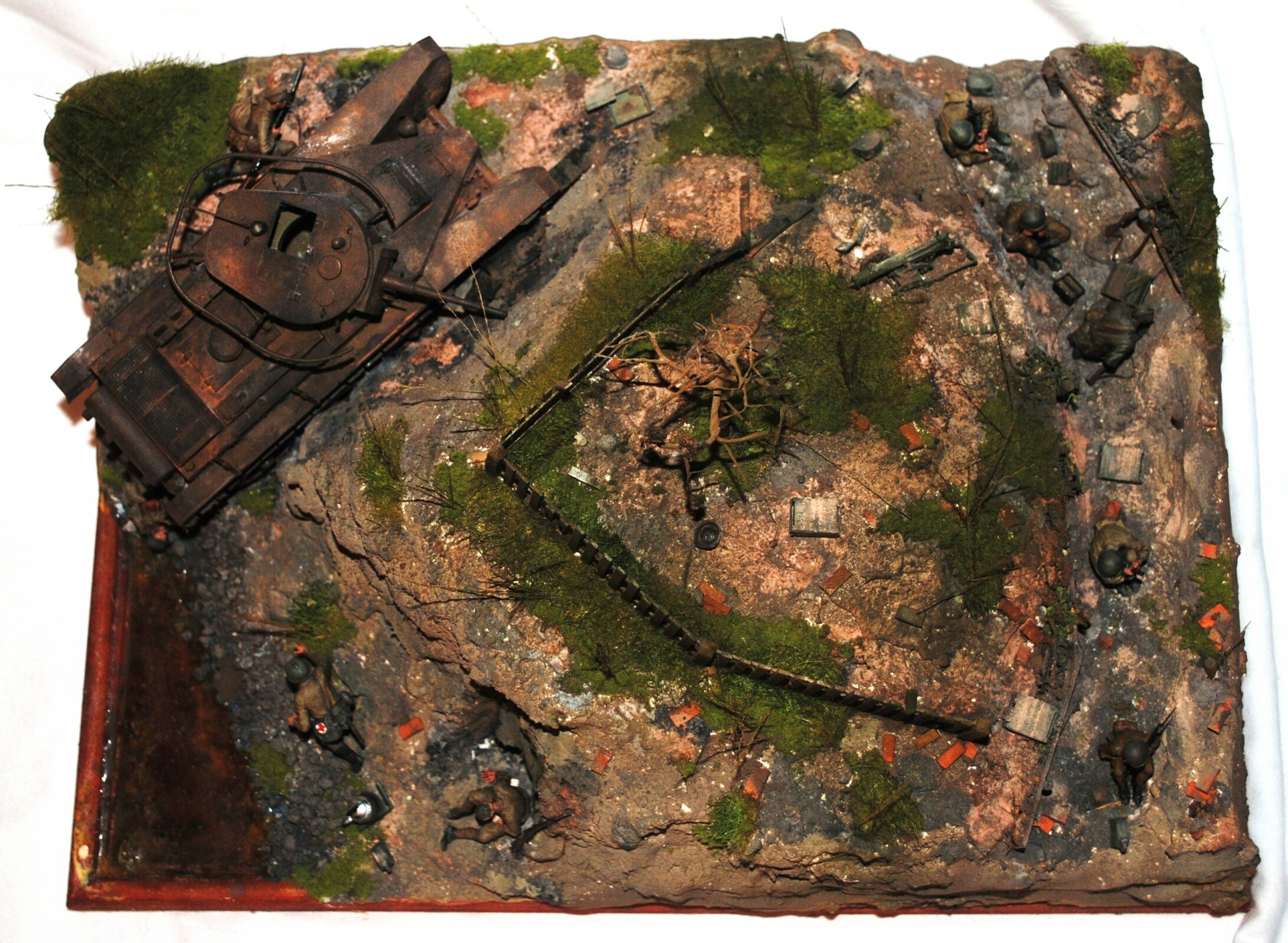 Делал диораму по фотографии, опубликованной в книге Бориса Пидемского "Под стук метронома". Постараюсь отсканировать ее и выложить либо на форум , либо в виде ссылки. На ней изображены подбитые танки БТ, погода достаточно ясная, снега не видно и складывается впечатление.что достаточно тепло.