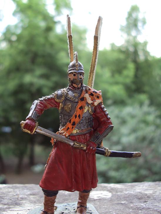 Gotic, пожалуйста посмотрите на других расписанных уже поляков в галереи. Перья ну никак не могут быть просто белыми, шкура барса не может быть просто оранжевой, там присутствуют и другие цвета и оттенки того же оранжевого(наберите в ГУГЛе слово "барс"), поработайте с глазами фигуры. а также с цветом лица. Красить старайтесь аккуратней не вылезая за пределы(просматривается на кирасе), старайтесь оттенять цвета.
