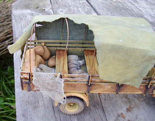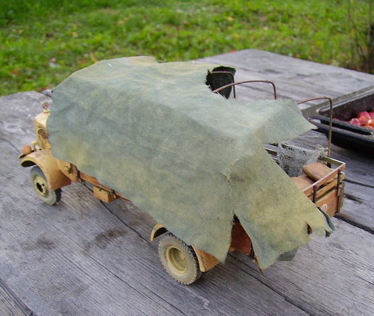 Руки бы пообрывать водителю: так запустить машину!Улыбнуло:позавчера видел во дворах также проржавевшую легковушку...Понравилось. Только брезент жестковат вышел,его бы помять немного ,чтоб висел а не лежал.Искренне желаю удачи!