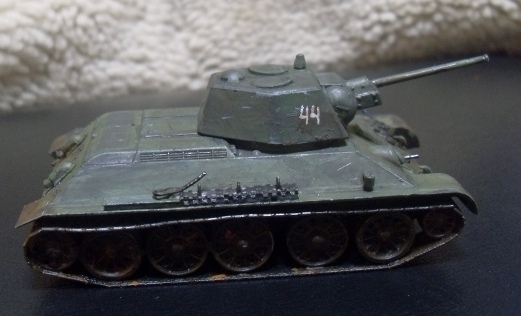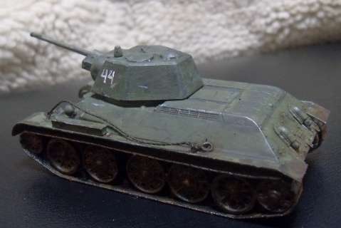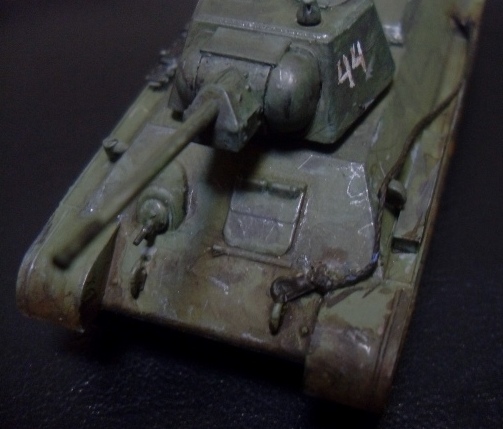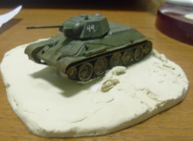 Принесли мне на работу отвергнутый ребенком и собраный его папой Т-34 от "Звезды" в 72м масштабе. Попросили "чё-нибудь с им сварганить". Второй раз в жизни имел дело с БТТ. Я такой же новичок в раскраске техники, как и многие в этом разделе, потому прошу у Вас помощи! Хочу попробовать сделать грязный-грязный танк на берегу речки (идея:"грязи не боюсь, мыться не буду").Руководствоваться буду только Вашими советами. Правда, будет реальный долгострой: делать буду на работе, в свободное от своих заморочек время ("заказчик" согласен ждать). Вот что уже натворил: