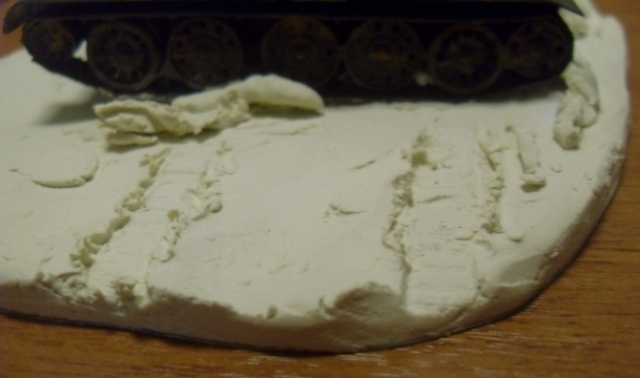 Это был пробный разворот. На гусеницы почти не налипло. Так думаю, надо размягчить основу и поглубже утопить в "грунт", а затем развернуться. Масса какая-то странная попалась, очень сильно "садится". Надо водой размягчить. Big Killer, тогда танчик придётся сразу фиксировать и больше не снимать?