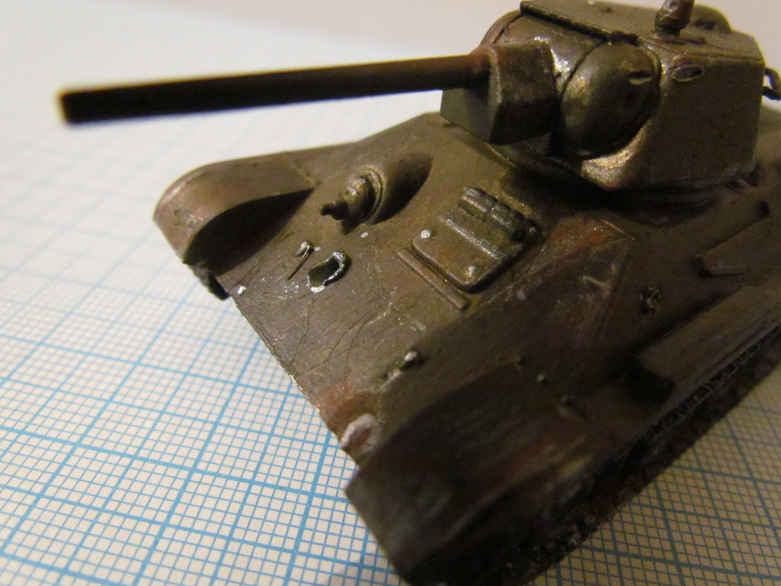 Кончик ствола нагаром черным надо бы, ржавчину на колёса и гусеницы и всё как бы)))