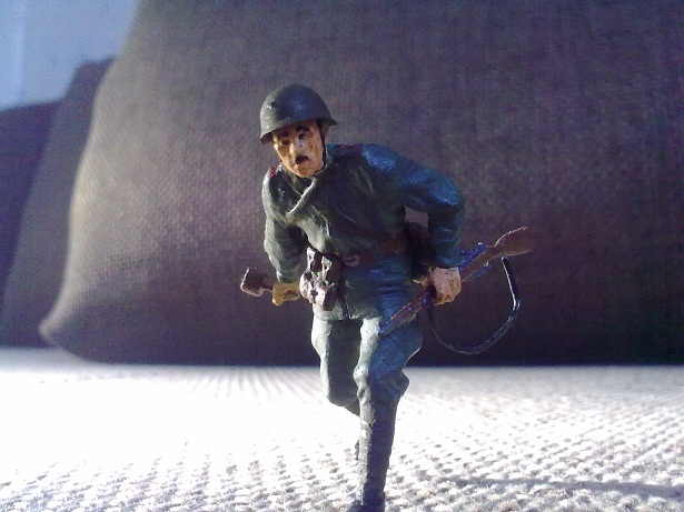 Кстати, насчет конверсий: если данному бойцу приделать руку от бойца из работы "Больно", может получиться неплохой вариант-раненый боец кидается с гранатой под танк!