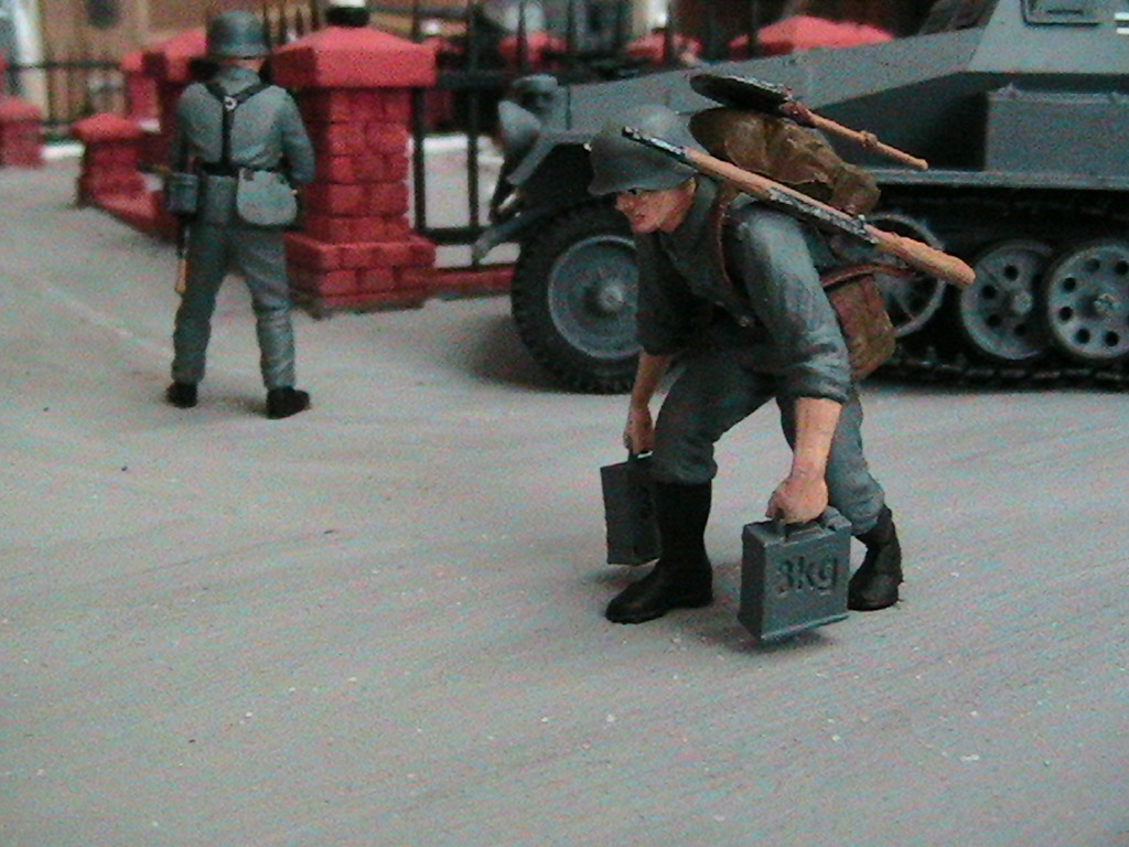 По городскому бою, я так понимаю, это совершенствование госпиталя. Добавьте фигурок, например в окнах зданий. Уберите всю фортификацию - это создаст ощущение 1941-го года - нападения не ожидали. Добавлю, что фигурки не должны быть в маскхалатах, как снайперы - в ближайшем тылу их не носили, это вызывало бы подозрение. Удачи)))