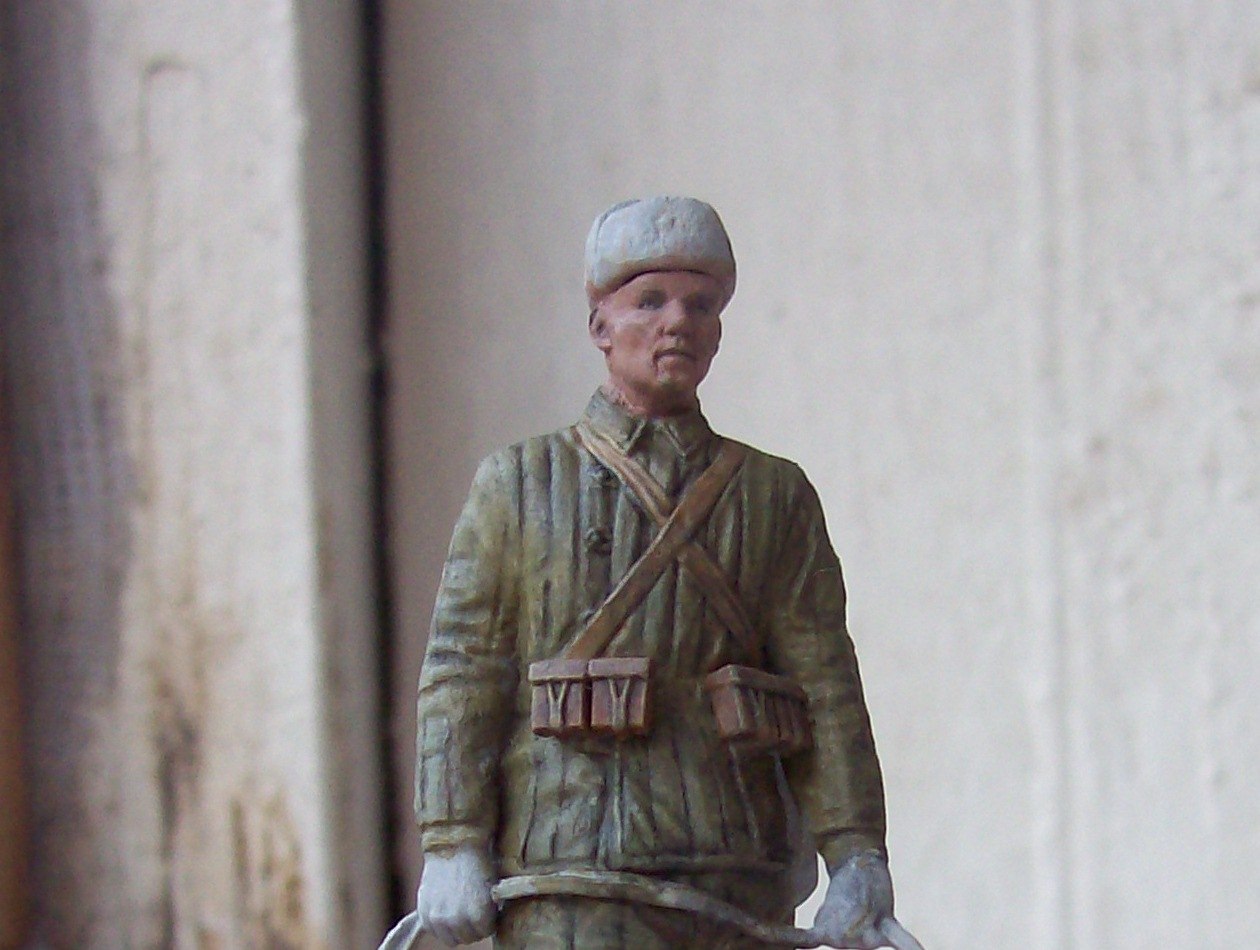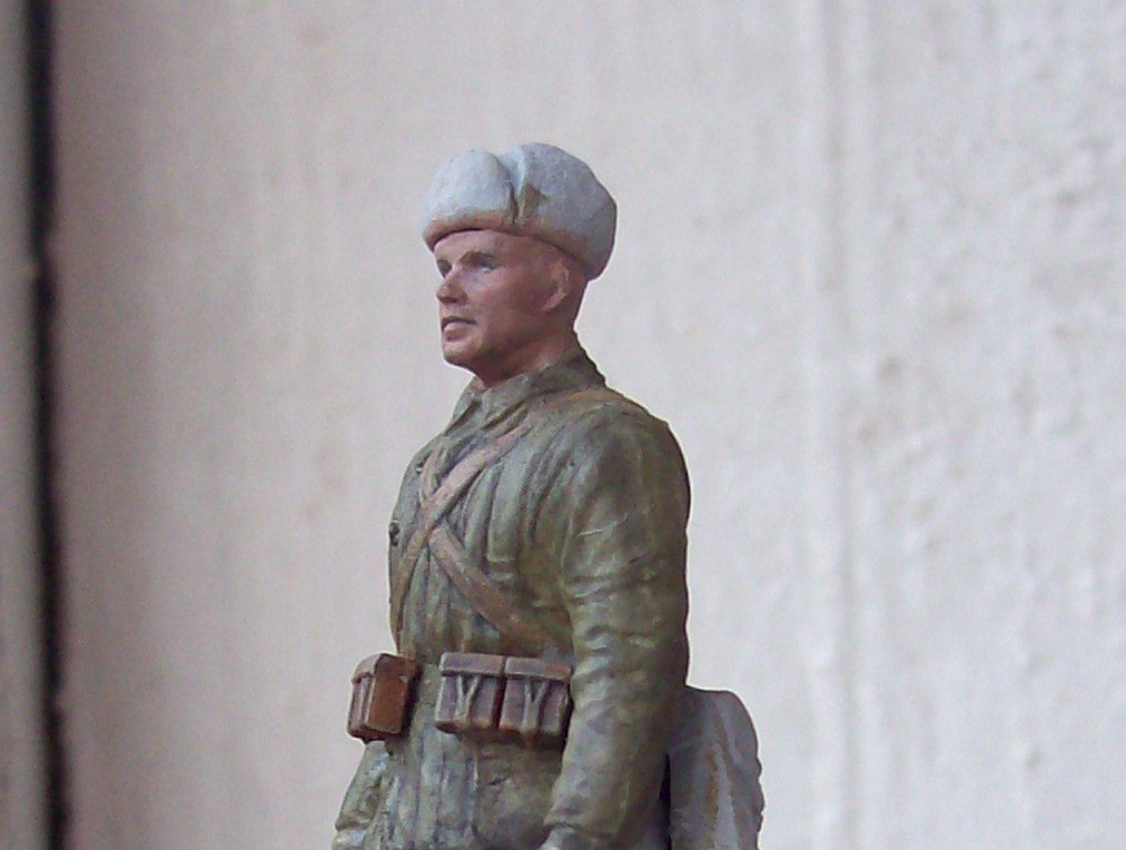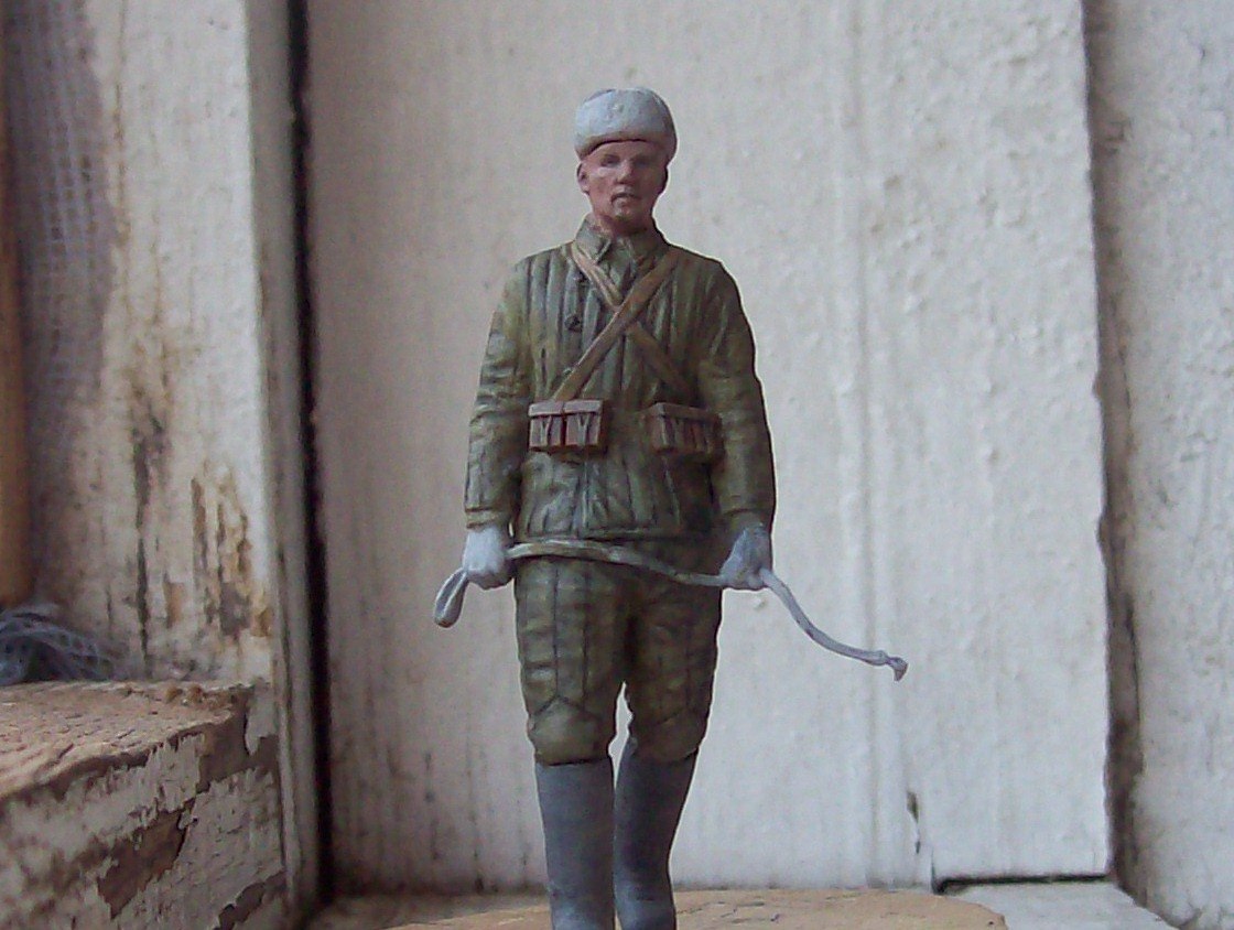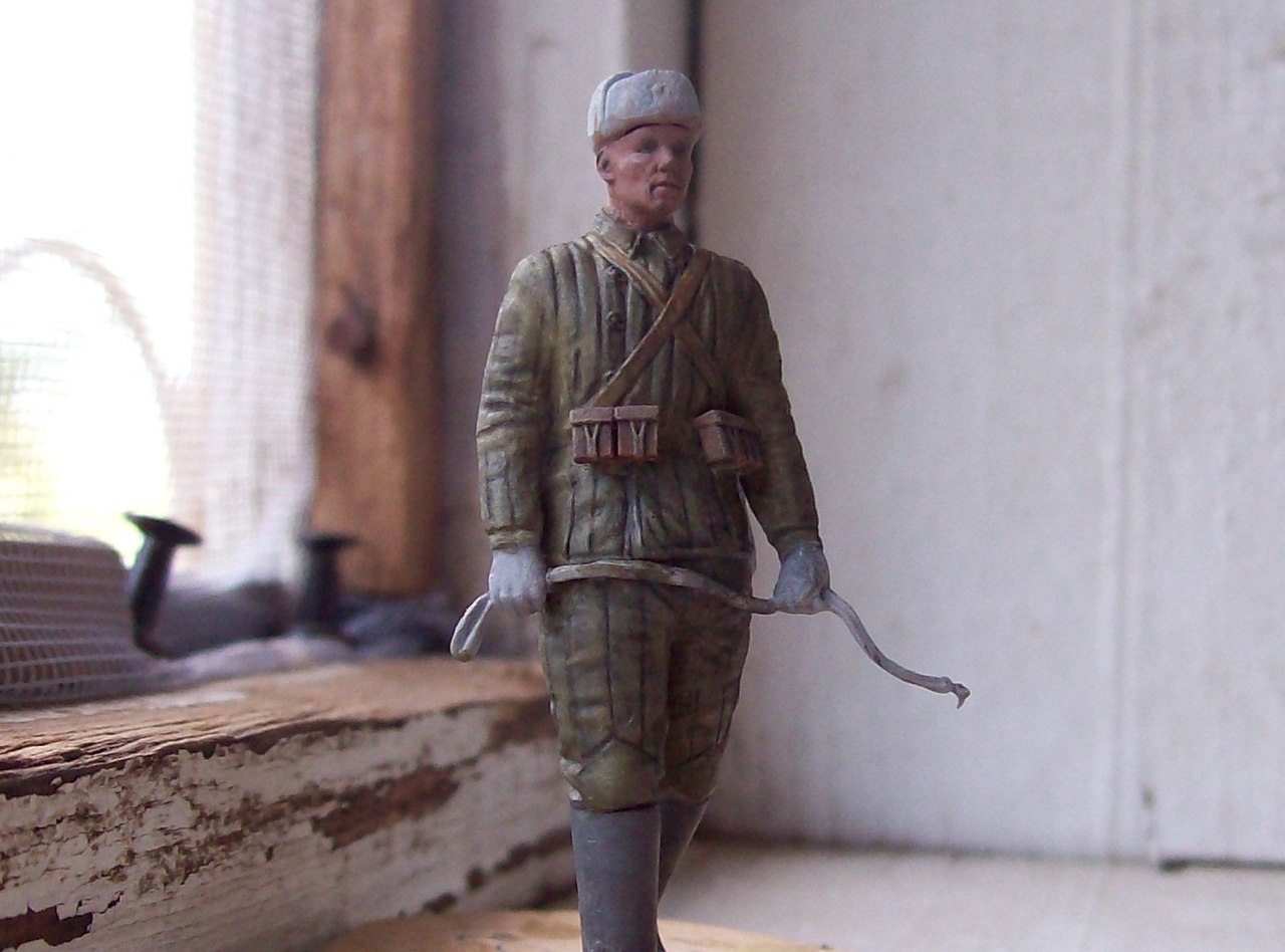 Действительно хорошо вышло, вы молодец, одежда и омуниция на 5+. Обратите внимание на валеночки, пообтрепайте слегка, заплатку сделайте, а то как будто только что скаьали их. Удачи!