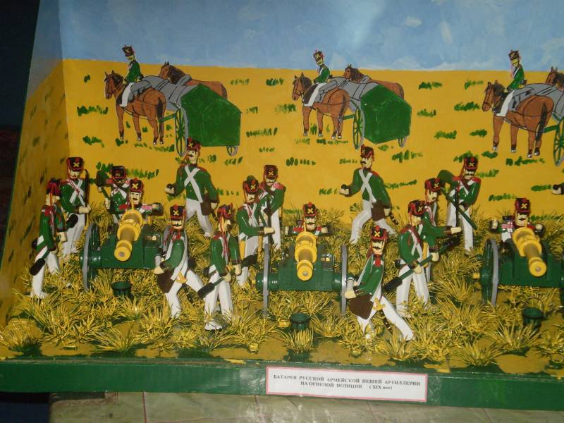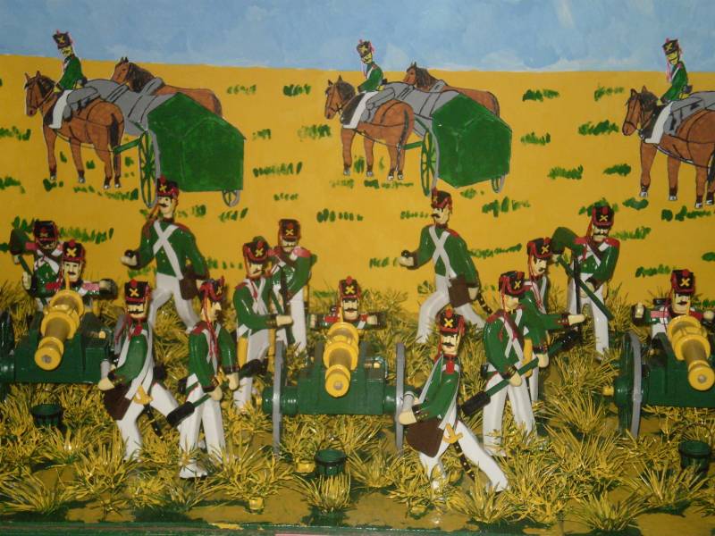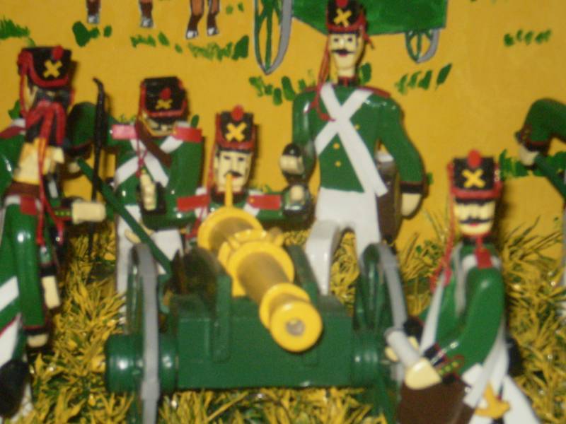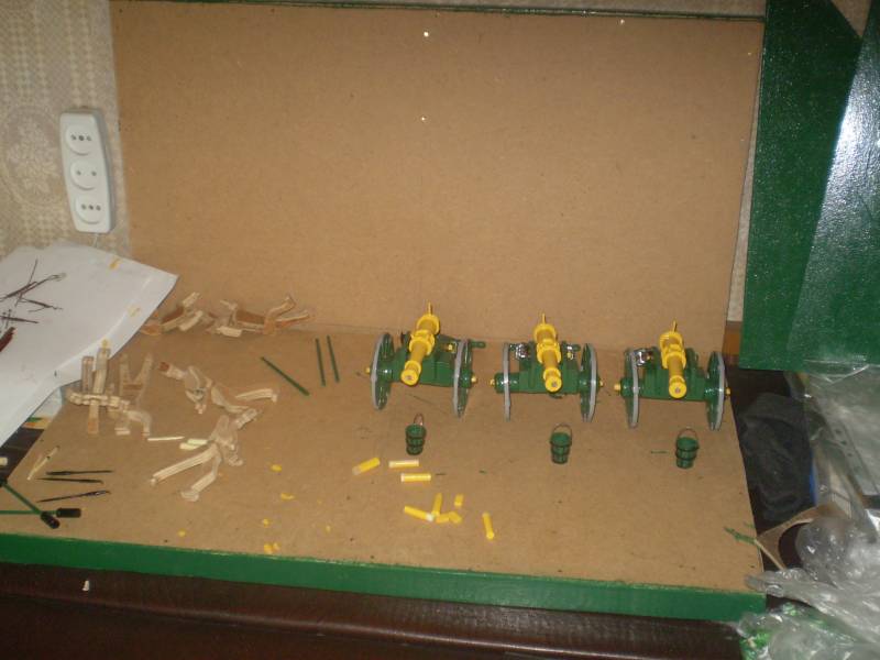 Вот и свершиласть мечта ,,идиота".Сделал наконец то диараму. На всё ушло 3 месяца. Размеры джиарамы 70 см на 40 см.Высота фигурок 13 см. Состав: 3 орудия, 18 артилеристов, 1 офицер(поручик) Материал: фанера, бумага, нитки. Вот и всё.