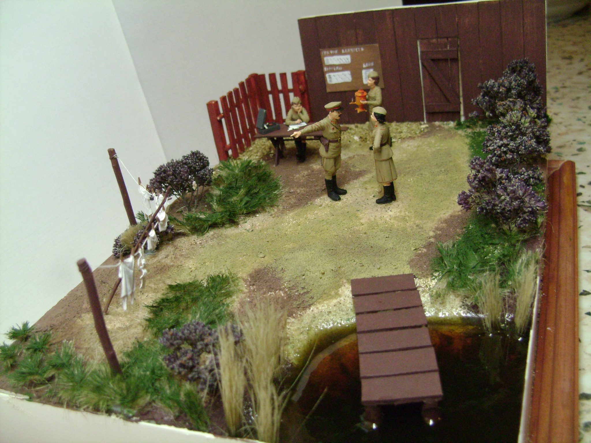 Павел, эта работа смотрится на пару порядков лучше ваши предыдущих работ. особенно основание. но все таки некоторые но. на помосте надо бы доски уже и более "хаотично" что ли.. да и вообще, все доски на диораме надо менять. и цвет их надо менять. они же не половой краской покрашены...