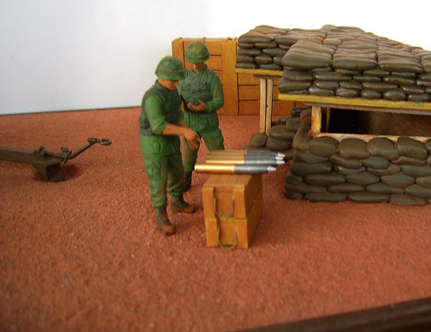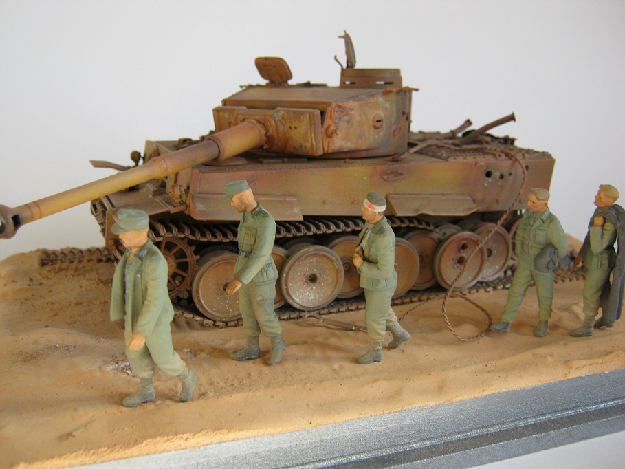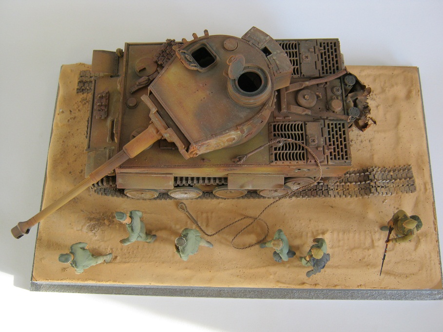 35-й массштаб, фигурки МВ, "Тигр" от "звезды". Основание гипс, песок, кошачий наполнитель. Танк достался частично собранный и некоторых деталей не доставало. Решил сделать таким. Красил нитрой "Хома", гуашь, масло.