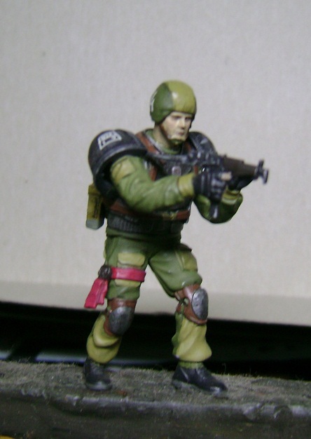 Есть ещё такой боец. Набор от "Звезды" и детали от ревел и вархаммер. Окрашен также нитрой.
