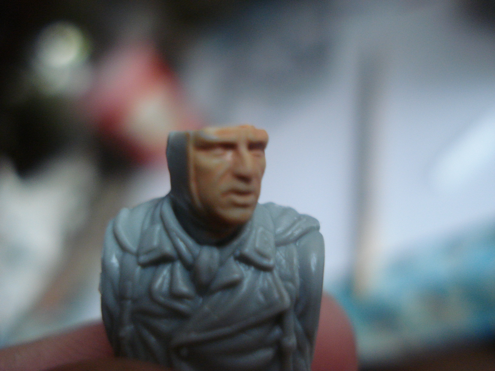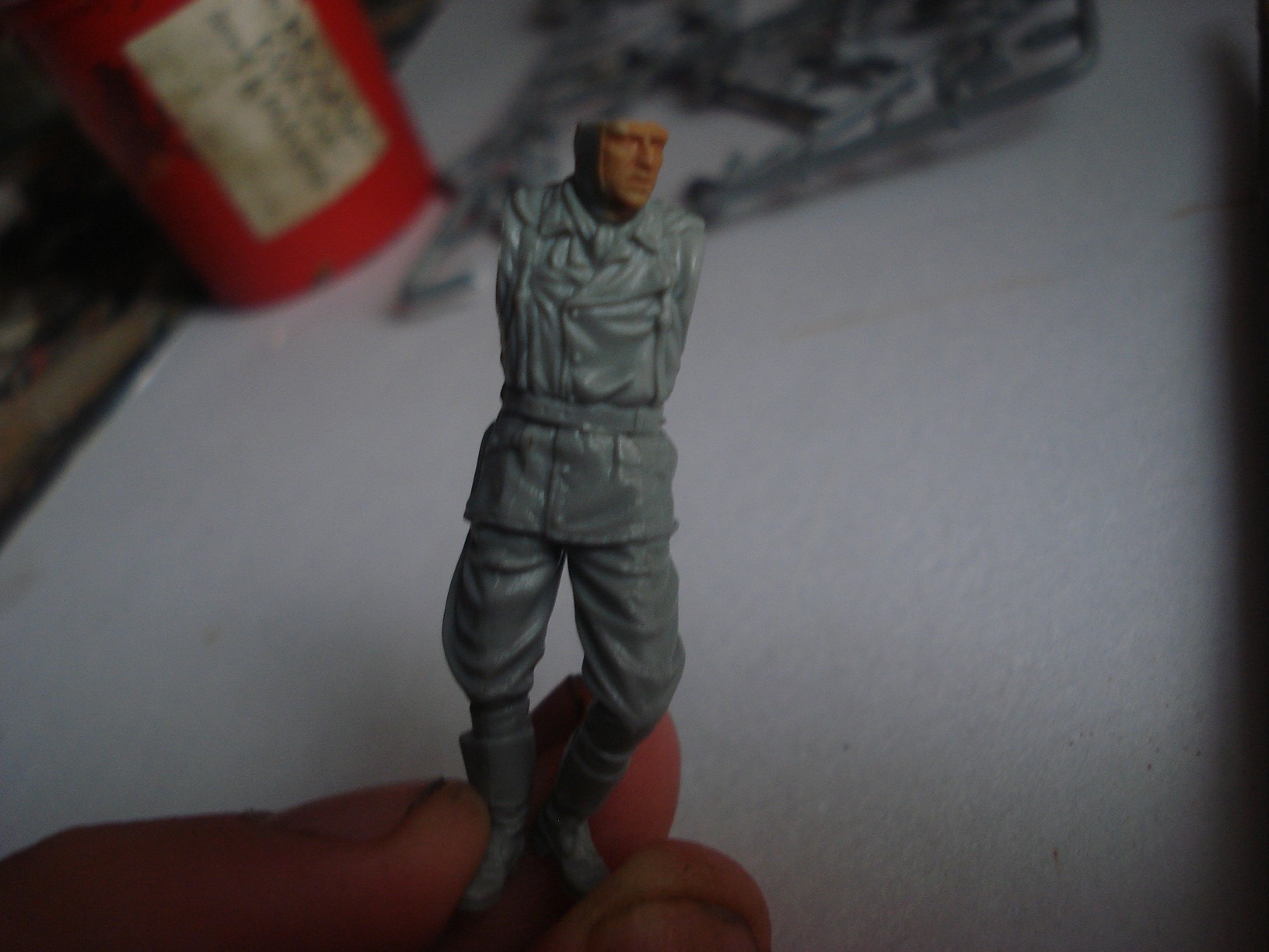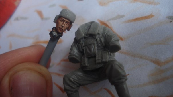 ну что ж...блог стартовал весело,что очень радует.А я начинаю диораму с эти набором(давненько диорам не делал-теперь вот захотелось).склеил вот первую фигурку.набор хороший,литье четкое,облоя нет.Нанес 1 слой базы на лицо.красить(росписывать наверно все же не научился-вам виднее) буду как обычно-питерской темперой пва.