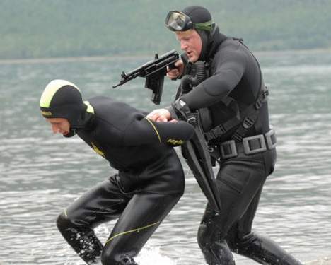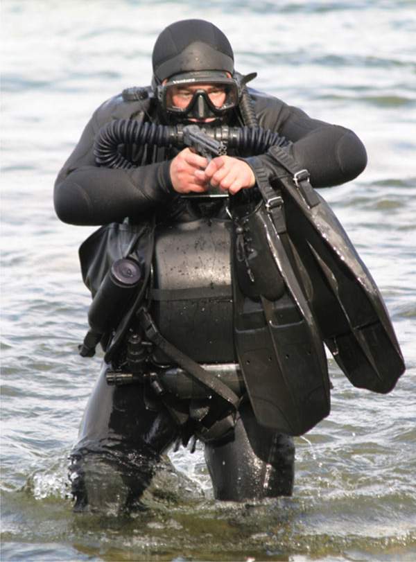 В данный момент развед.-диверс. отряды типа "Дельфин" ВМФ России перешли, ну или переходят на такую компановку снаряжения. И блестящих предметов практически. Даже маски боевых пловцов Вы сможете увидеть толлько на легальных фотоснимках, а вот акваскоп врядли. С уважением!