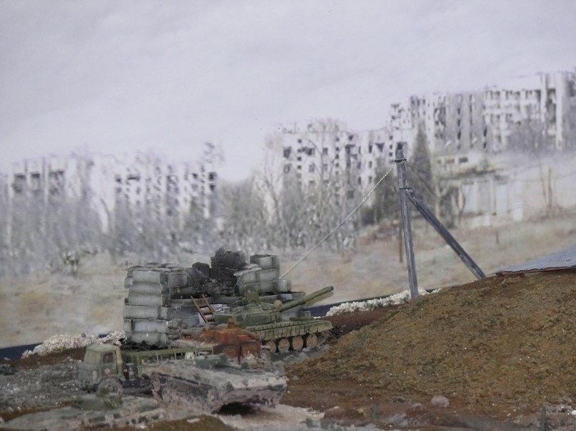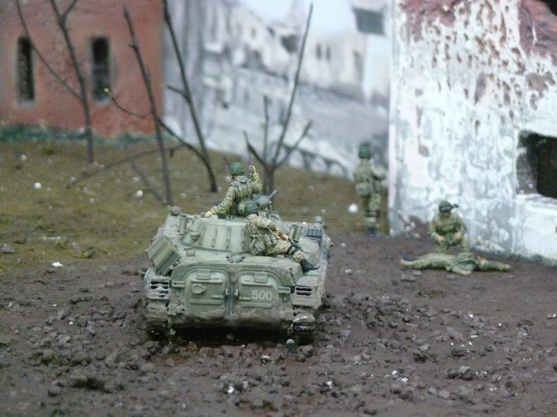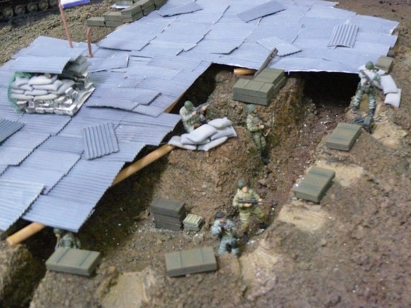 Как я говорил уже ранее мне был задан определённый сюжет (см. выше), времени на изготовление фигурок которые переносят ранненого не было, и именно по этой причине я включил сюда бойцов ВОВ не много их подпилив. Эта диорама находится в нашем ОМОНе в музее и до этой темы вопросов ни у кого не возникало (а там работают люди у которых не одна командировка в СКВО). Вы увидели что бойцы ВОВ по внешнему виду, или же имели дело с набором "Звезды" Санитары?