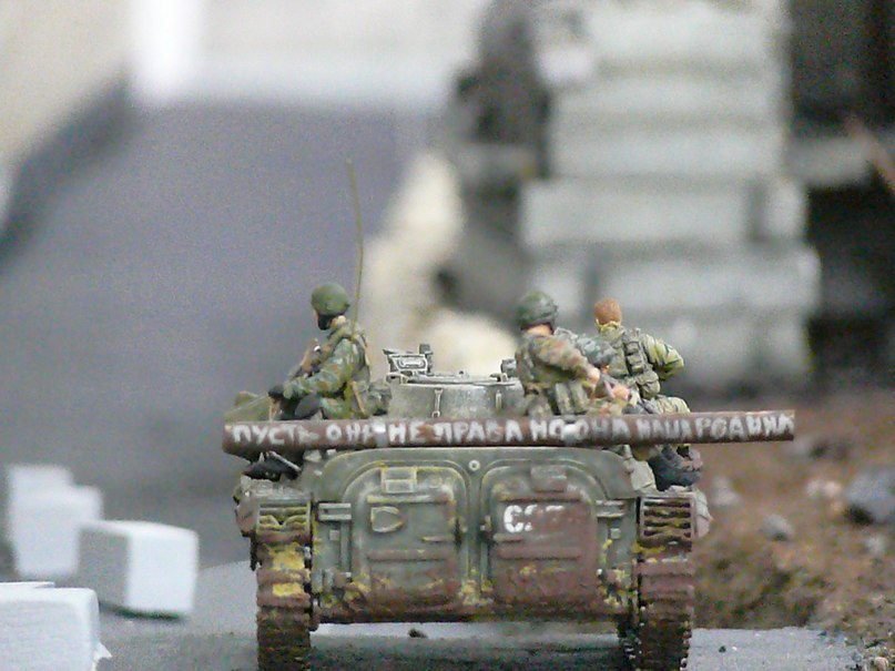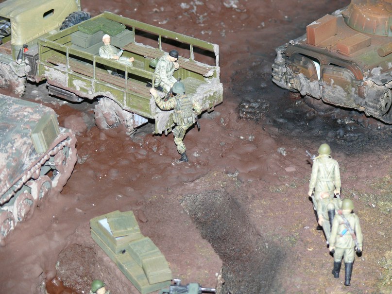 Сева, сам сюжет хороший и тема нужная. Размер мне очень нравится, сам люблю такие делать. Но вот фотки хромают, нет чёткости. Фото общих композиций они понятны, но здесь на форуме ещё и любят посмотреть каждую модель и солдатиков к ним приписанных. Если солдат ранен, то куда ранен, если грязь на танке, то какая она. В общем вот так как-то. Сделайте другие фотки, покажите жизнь поближе. Удачи! (Я не учу и даже не советую, просто высказываюсь.)