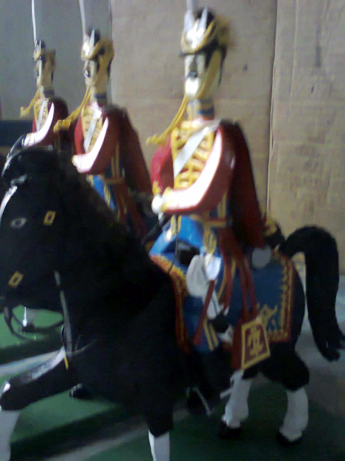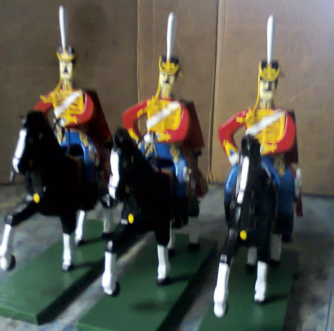 Учтя замечания коллег про изготовления гривы из ниток. я решил попробовать сделать не только гриву лошади, но и хвост. Получилось значительно лучше и реальней. Спасибо за подсказку. Выкладываю фото 3 гусар на новых ,,улучшенных" лошадях