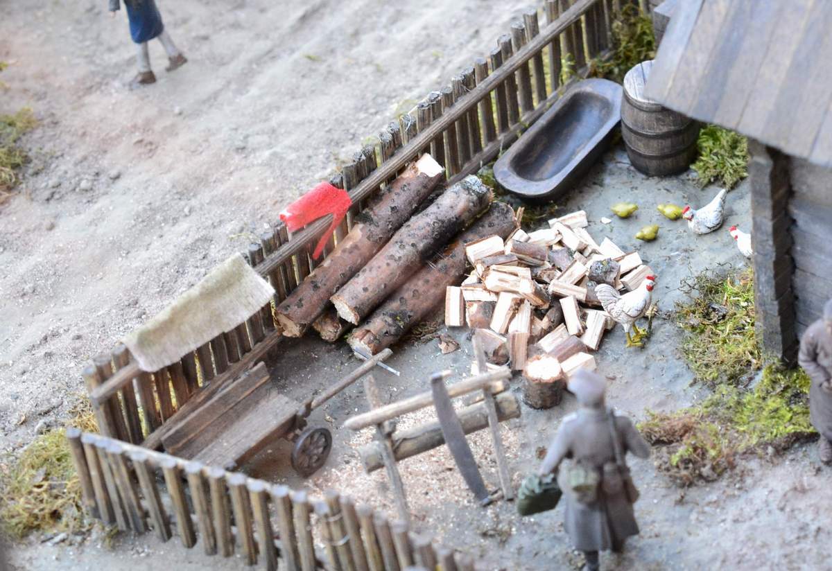 Рыба, моя работа - это всё же импровизация. Я, конечно же, стараюсь максимально приблизить к реальности, но не всегда получается, да и возможностей не всегда хватает. С каждой работой я стараюсь совершенствоваться. Изменяю подход к работам. Избы, к примеру, делал из кругляка ну и т.д. ит.п. Стараюсь больше пользоваться фотохроникой.