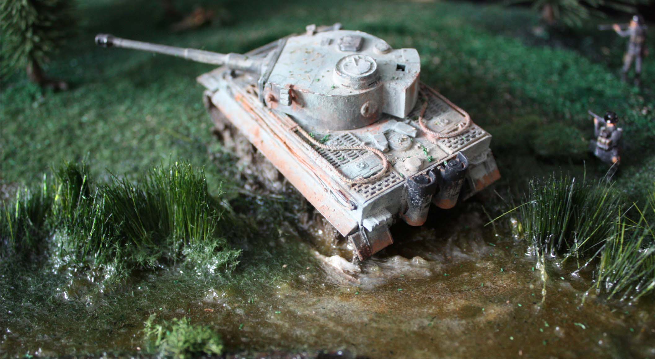 Техника, на мой взгляд, ржавая более чем нужно, ёлки смотрятся игрушечными. Листья(?) на Тигре можно делать из настоящей листвы, пробойником. Лучше бы было.