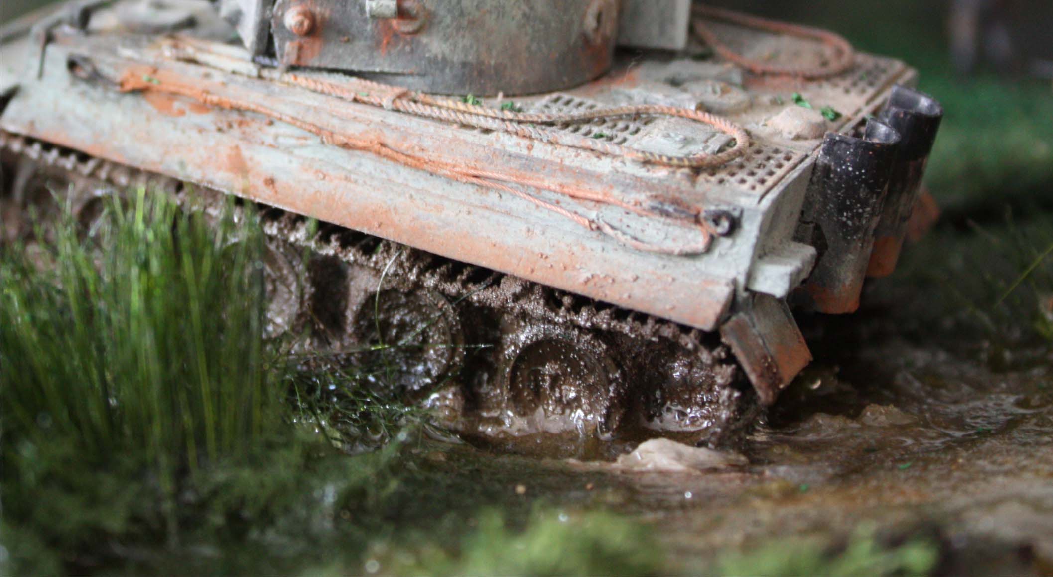 Добавлю небольшое замечание к уже сказанному. У тигров была очень низкой способность преодолевать даже совсем неглубокие "ручейки", не то что серьезную болотистую местность. Поэтому то, что тигр у Вас, Мирослав, СВОИМ ходом выбирается из заболоченной местности не придает сюжету реализма.