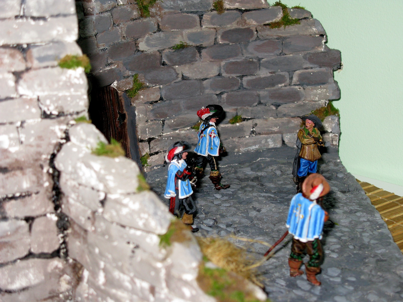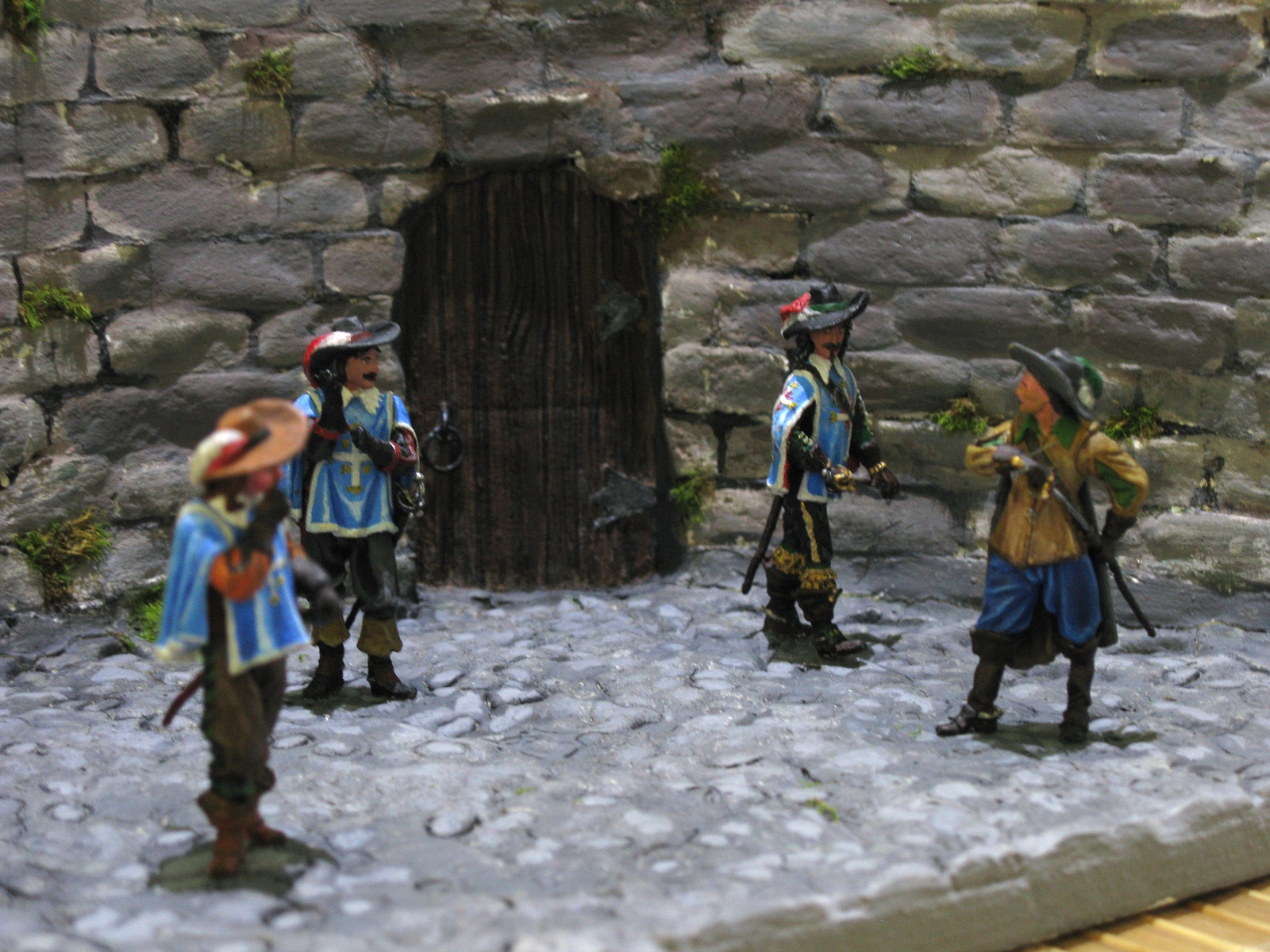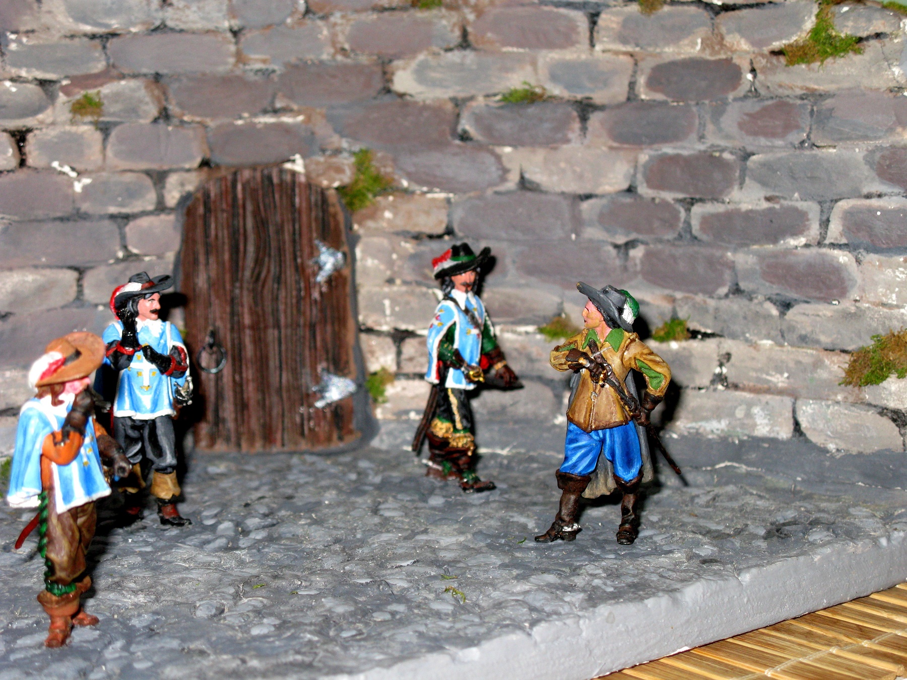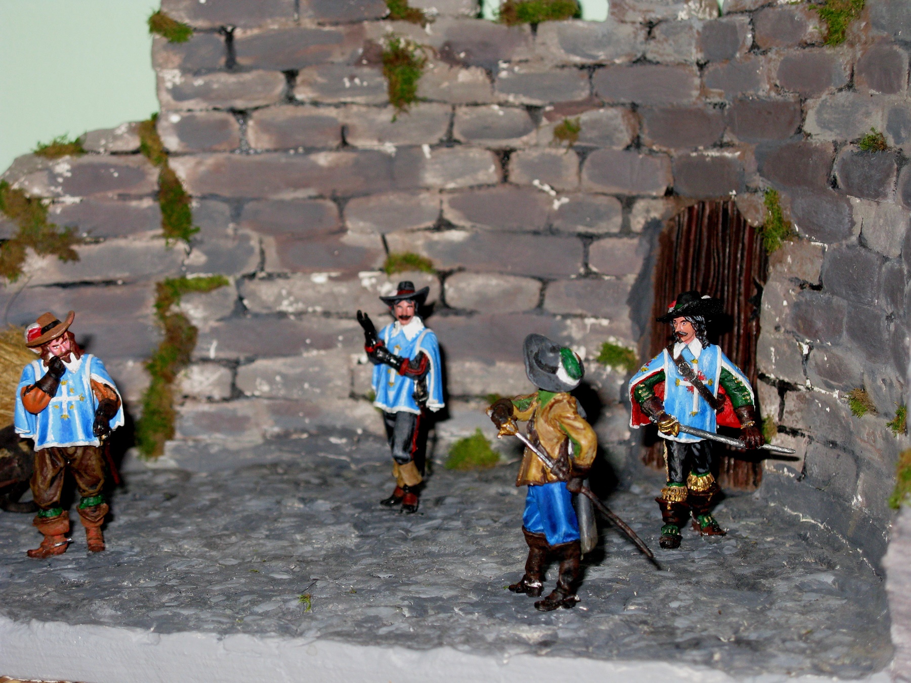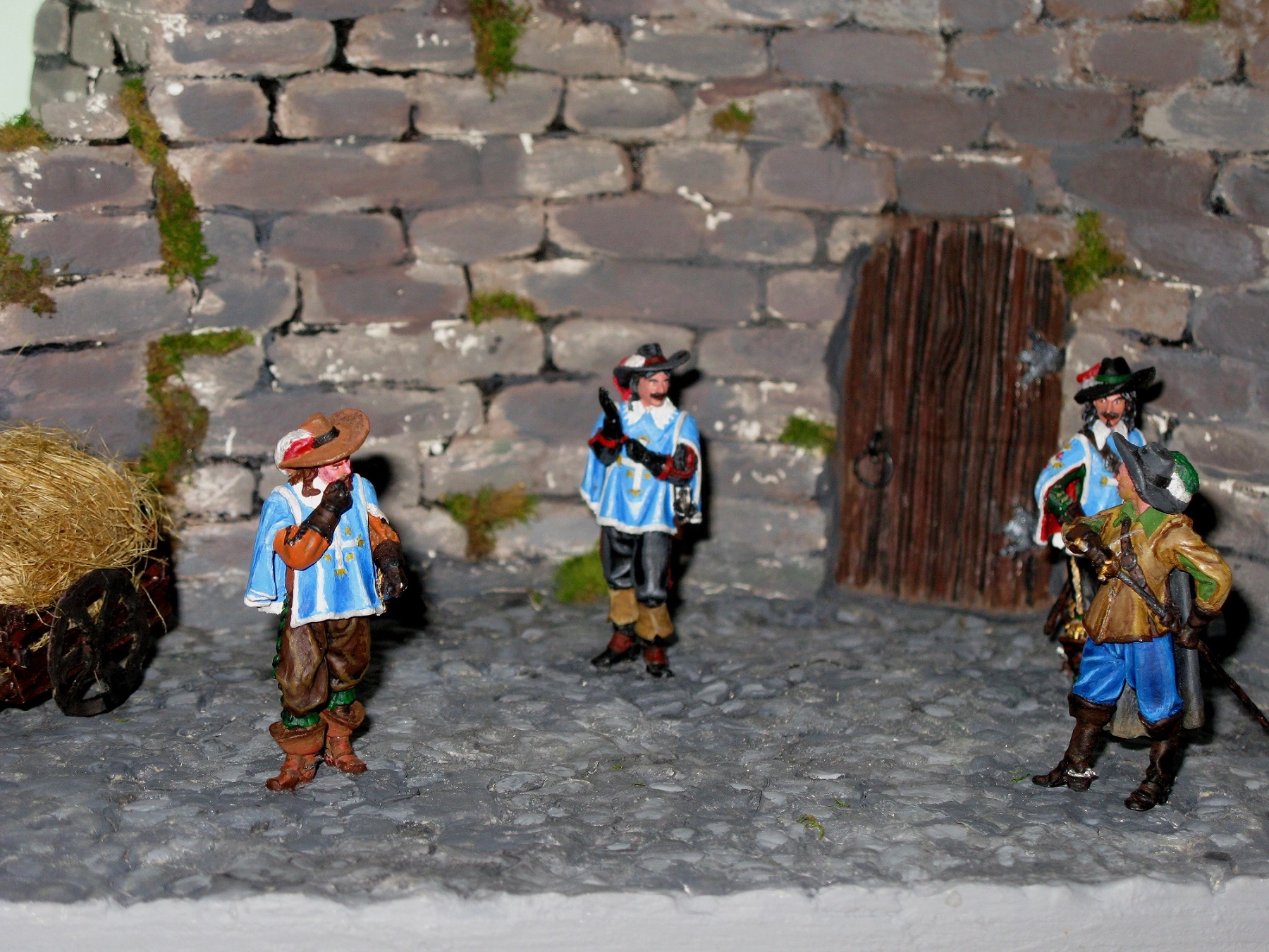 Мой первй опыт по созданию диорамы. Работа посвящена всем хорошо известной с детства дуэли-знакомству Д'Артаньяна с тремя королевскими мушкетерами. Тема не новая, конечно, но не стареющая.