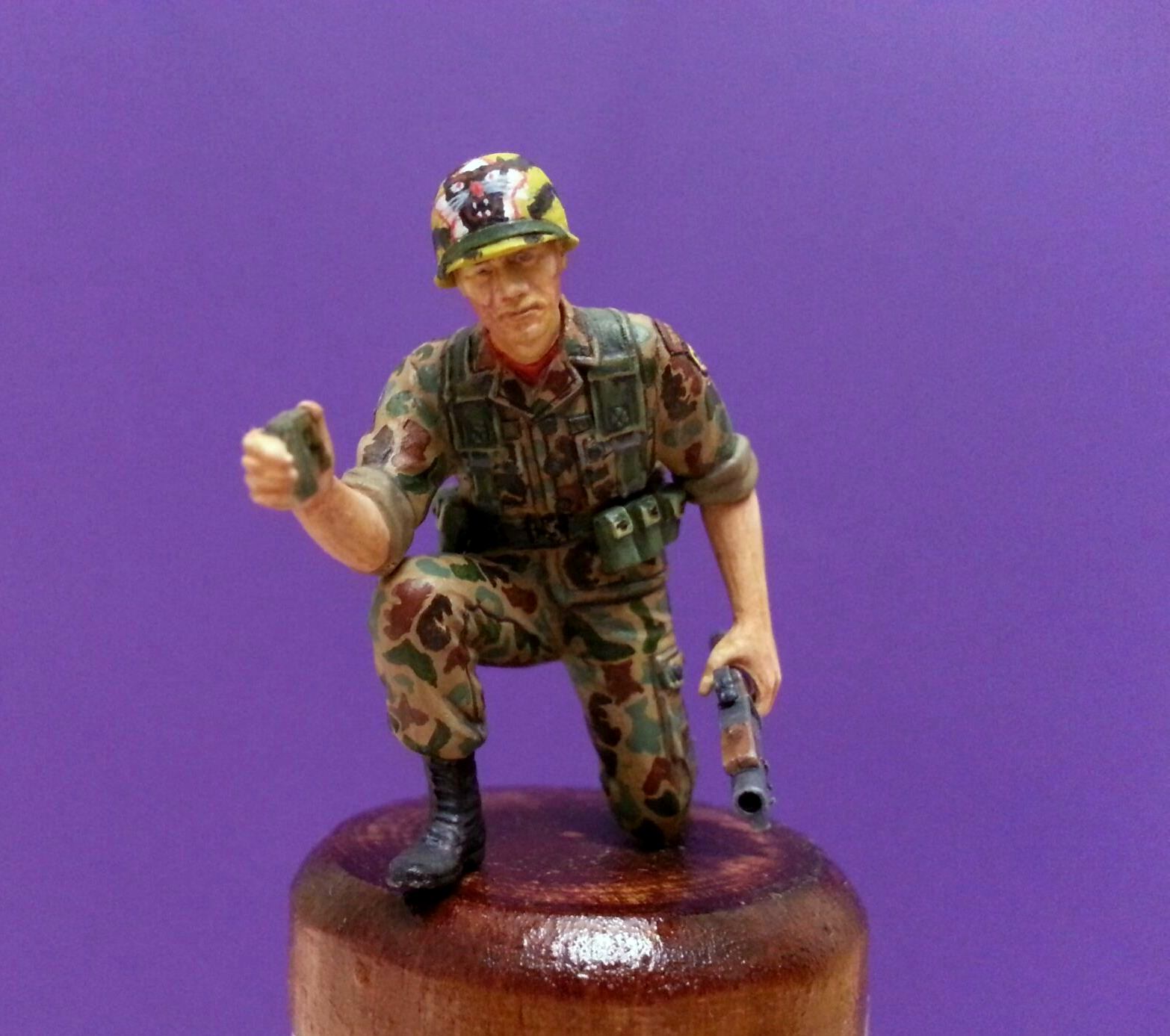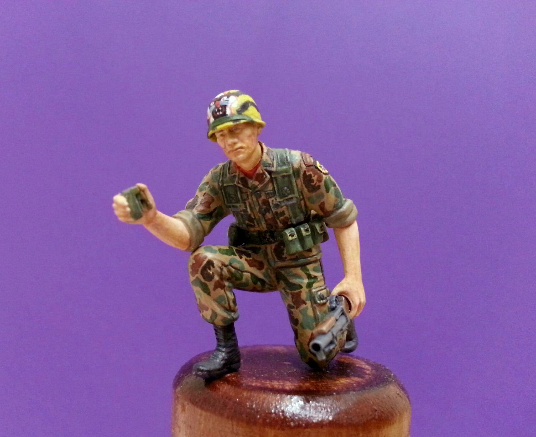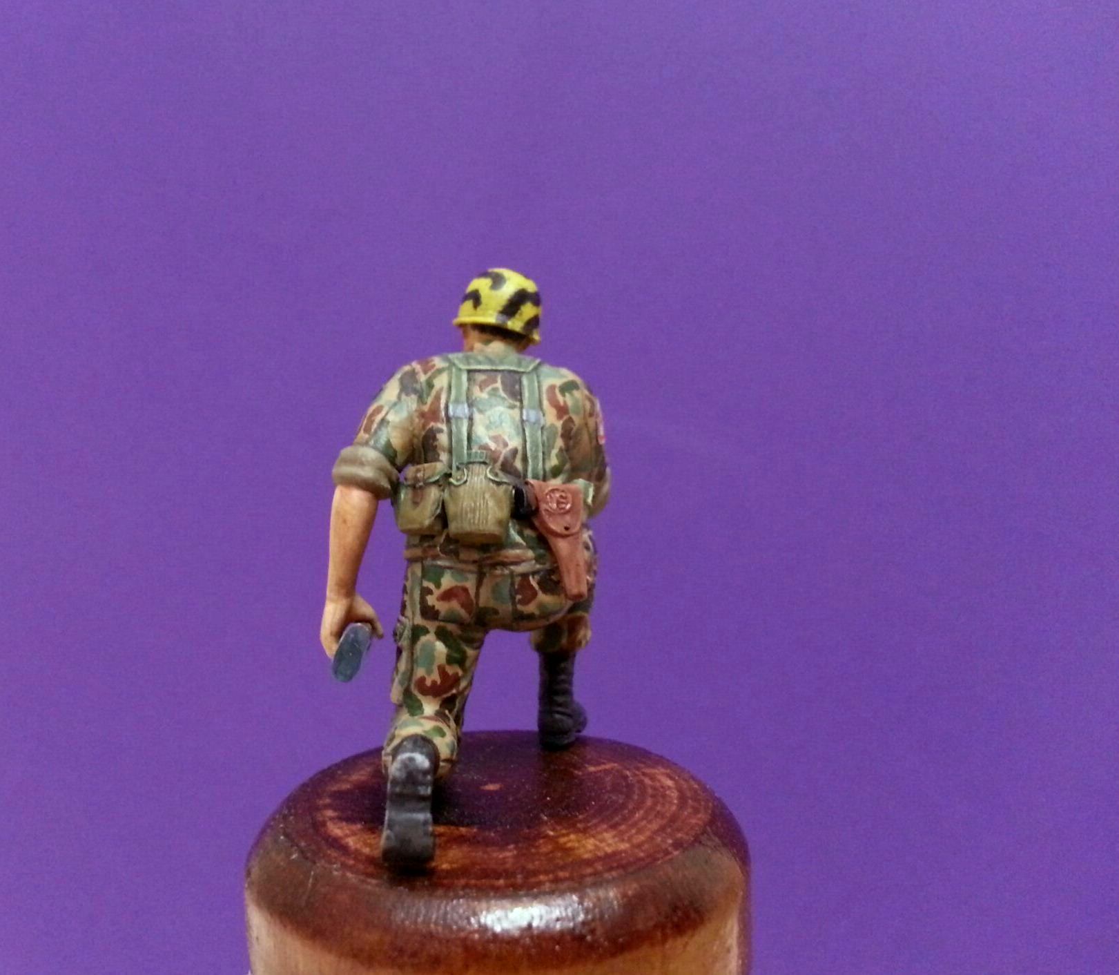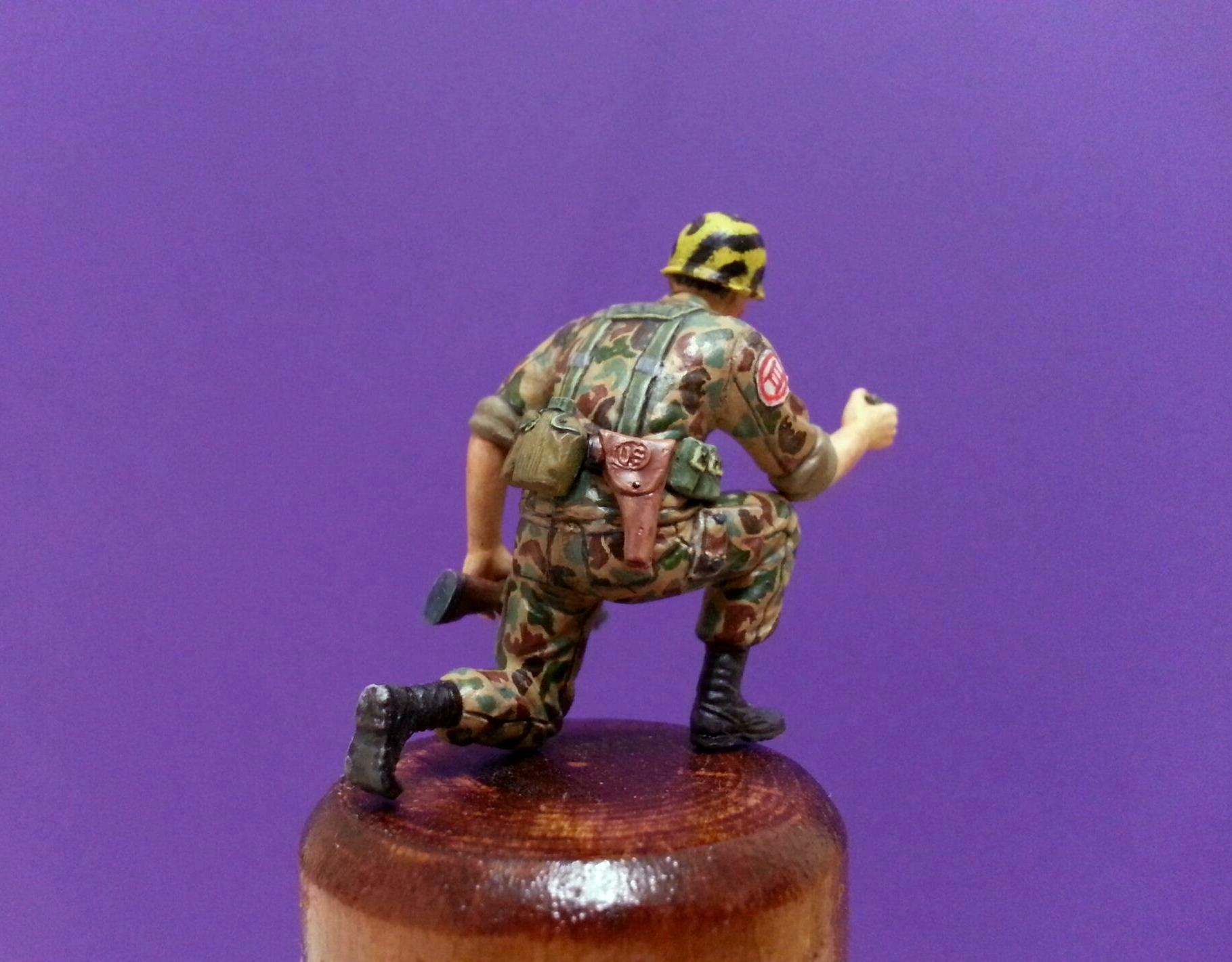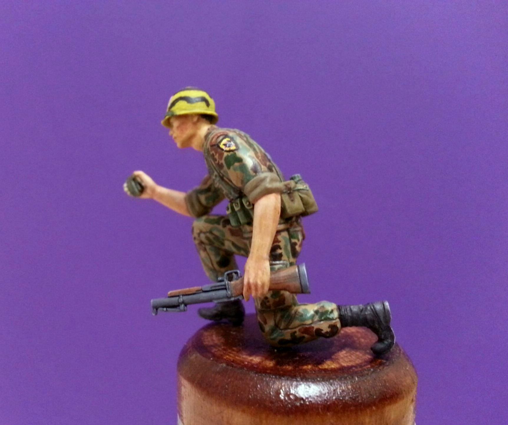 Фигурка из набора Dragon.Пластмассовая сборная.В работе хотел изобразить рейнджера южан 3 группа 35-го батальона. Шлем М1 и амуниция Master Box.Окрашено акриловой краской
