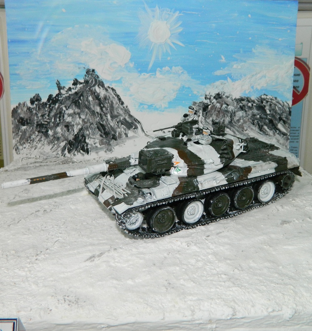 Небольшая диорама с видом на горы: танк TYPE 74 (от Тамии) с фигурками (экипажем). Назвал просто " На острове Миякодзима".Задний фон решил написать сам, хотя задняя стенка съемная, можно фон поменять при желании. Есть фото с которого писал фон, сделаю фото выложу с видом на оригинал