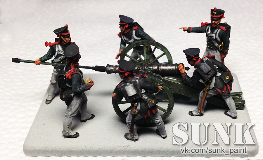 sunk Wrote:Русская пешая артиллерия 1812-1814 (Звезда, 1/72) Фигурки окрашены темперной краской. Пушка окрашена акрилом mrHobby, смывка художественной масляной краской, пигменты Tamiya.