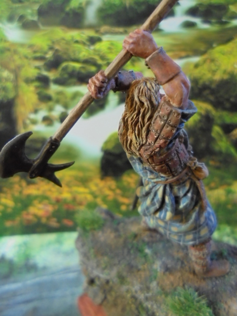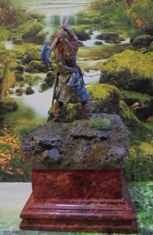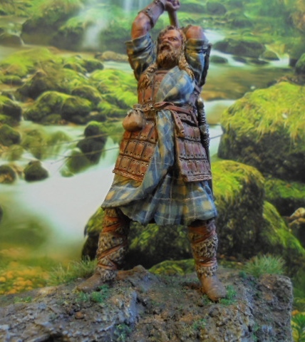 Хочу представить на суд зрителей свой долгострой.Фигурка шотландца 54мм по мотивам культового фильма.Фирму называть не буду,что бы не рекламировать .....Купил три разные фигурки еще до Нового года,очень хотелось арбалетчика на Средневековье.Когда пришел домой волосы встали дыбом.Но отчаиваться не стал,взял инструменты и засел за стол.В результате поменял у арбалетчика голову,ноги,кисти рук,долепливал кольчугу,но ничего не вышло,фигурка ушла в помойку.У монгола лицо изъедено язвами,единственная фигурка,дошедшая до росписи эта.Она мне совершенно не нравится,но как говорится,все что могу.Красил,как обычно,акрилом Валеджио и маслом.Больше всего понравилась работа с основанием.Делал по методике нашего уважаемого"Гуру"С.Поповиченко.Весной набрал в лесу корешков,веточек и шпаклевка по дереву вам в помощь.Смотрите,оценивайте,высказывайтесь!