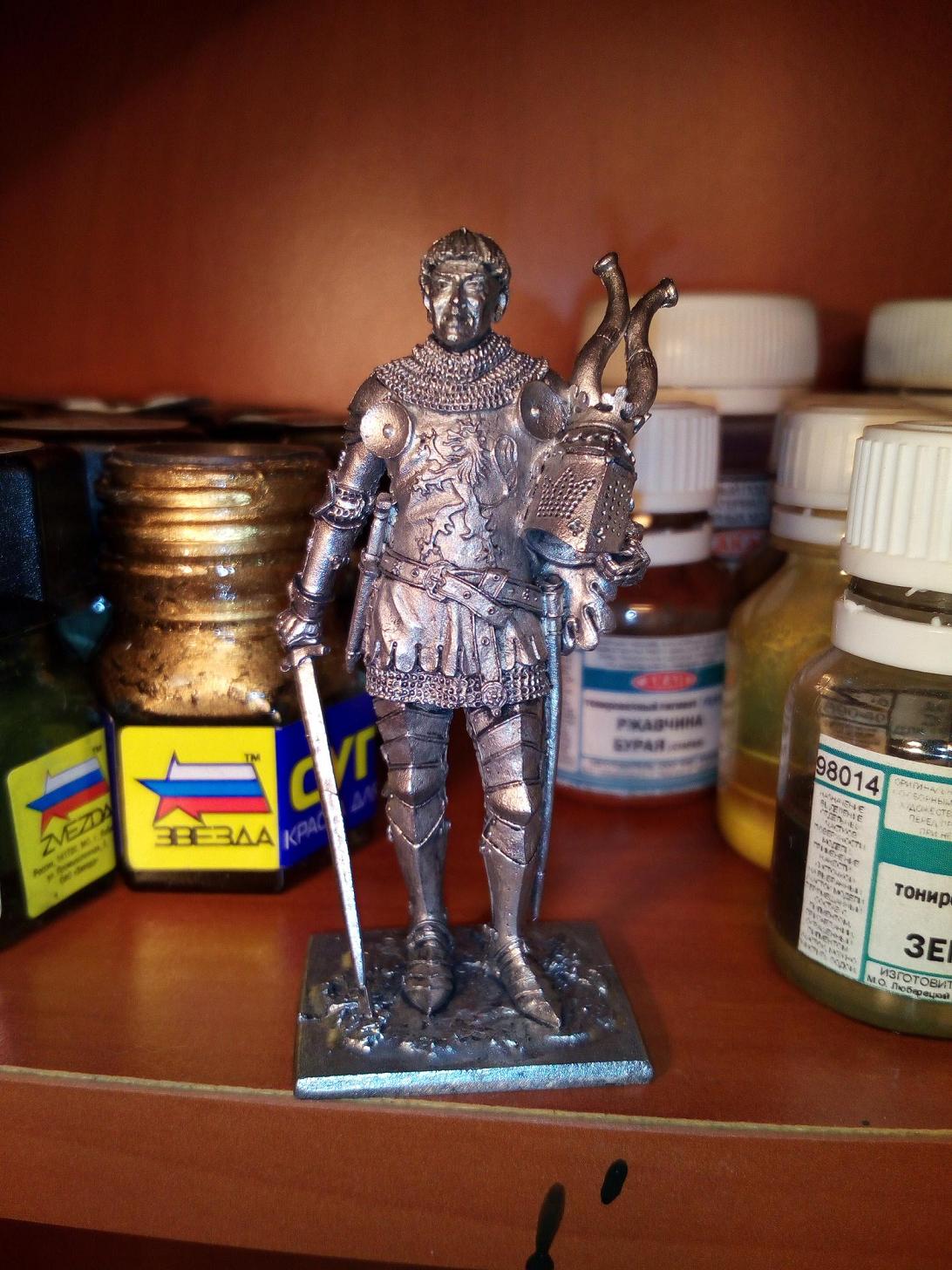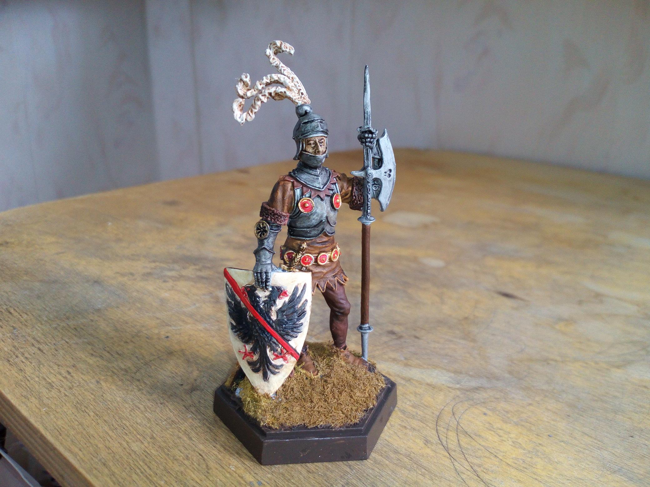 Вот что в итоге получилось. Использованы акрил и эмаль от Тамия и Питерская темпера. Средние века красил первый раз в жизни, так сказать проба пера.