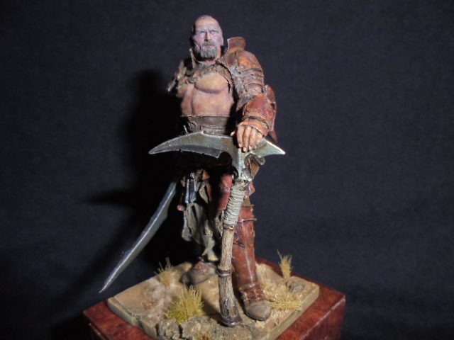 Представляю на ваш суд фигуру интереснейшей фирмы"Nocturne",продолжая свою любимую тему фэнтези.Литье и деталировка на высшем уровне.Но расписывать оказалось сложно,долго разбирался,где какая деталь,фактура,светотени.Но получил огромное удовольствие и ,конечно,опыт.Стражника я сильно"заржавил"и потрепал,мне показалось так.Видел потом роспись этой фигуры с применением техники НММ,тоже получилось неплохо,но я пока так не умею.В росписи использовал акрил Валеджио,масл.краски Мастер класс,пигменты МИГ,немного химии АК.После этой фигурки собираюсь попробовать 28 мм(тоже фэнтези).Приятного просмотра и всем творческих успехов!