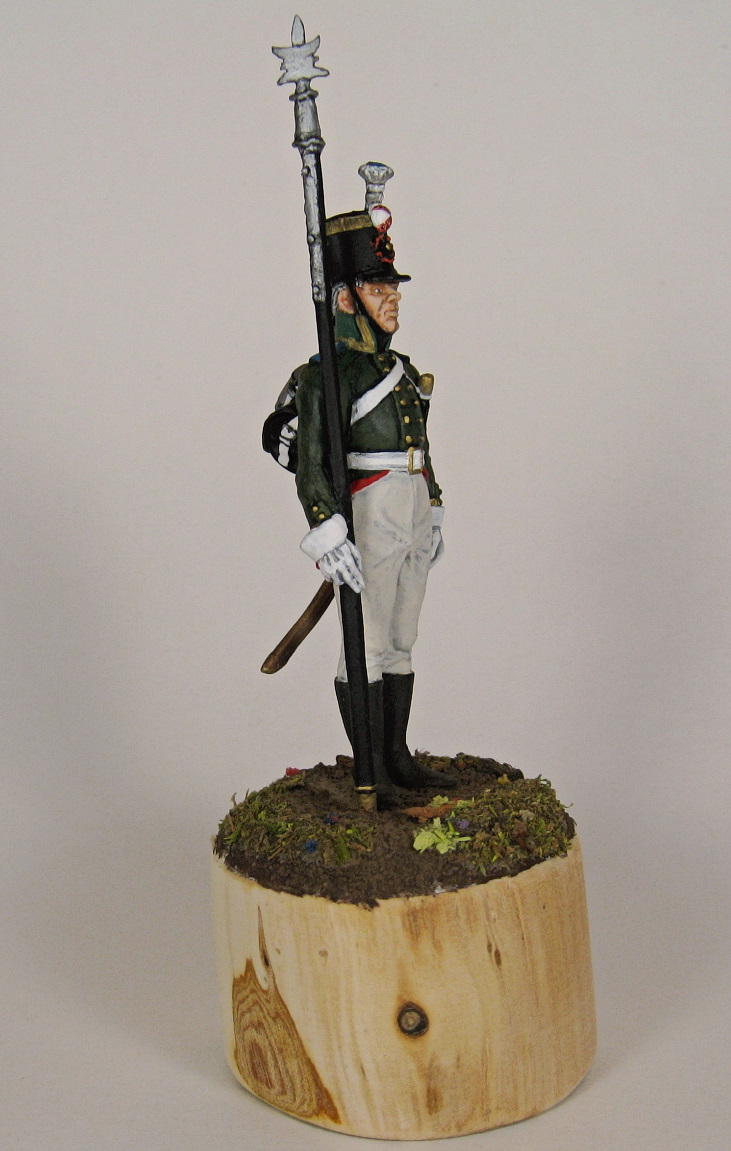 Вот такие две фигурки на 1805-7 год. Пехотинец унтер-офицер Архангелогородского мшкетерского полка, штаб-трубач Черниговского драгунского. Обе фигурки от E.K. Casting, 54 мм. Обе фигурки подверглись небольшим доработкам, чтобы соответствовать заявленному внешнему виду)