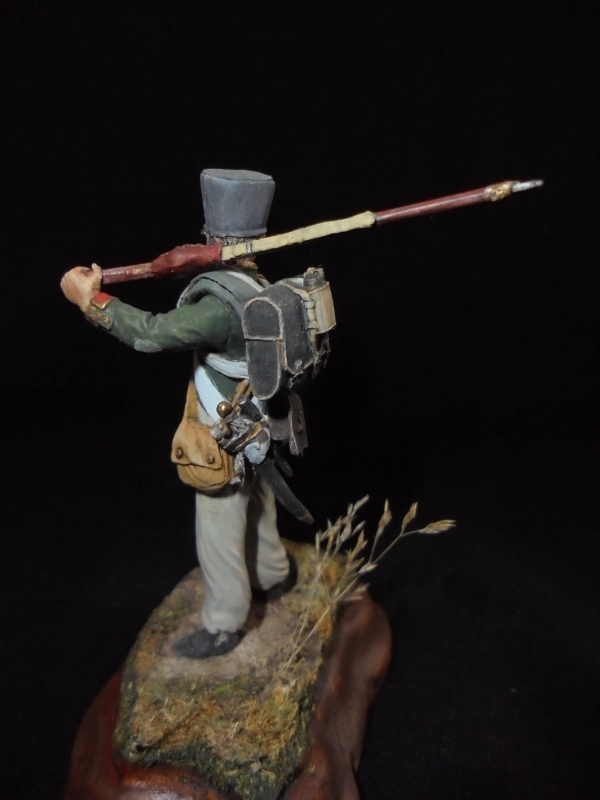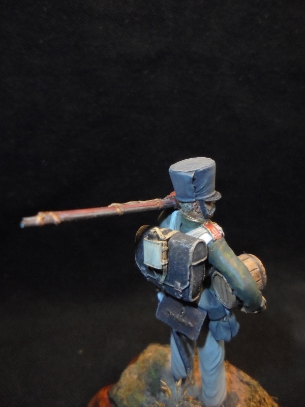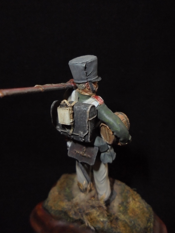 ),перекрасил в серый цвет скатку(она у меня была почему-то розовой) и постарался максимально убрать предательский блеск фигурки.Знаков отличия не рисовал,т.к. не разбираюсь.Если что-то не так,готов выслушать конструктивную критику на будущее.