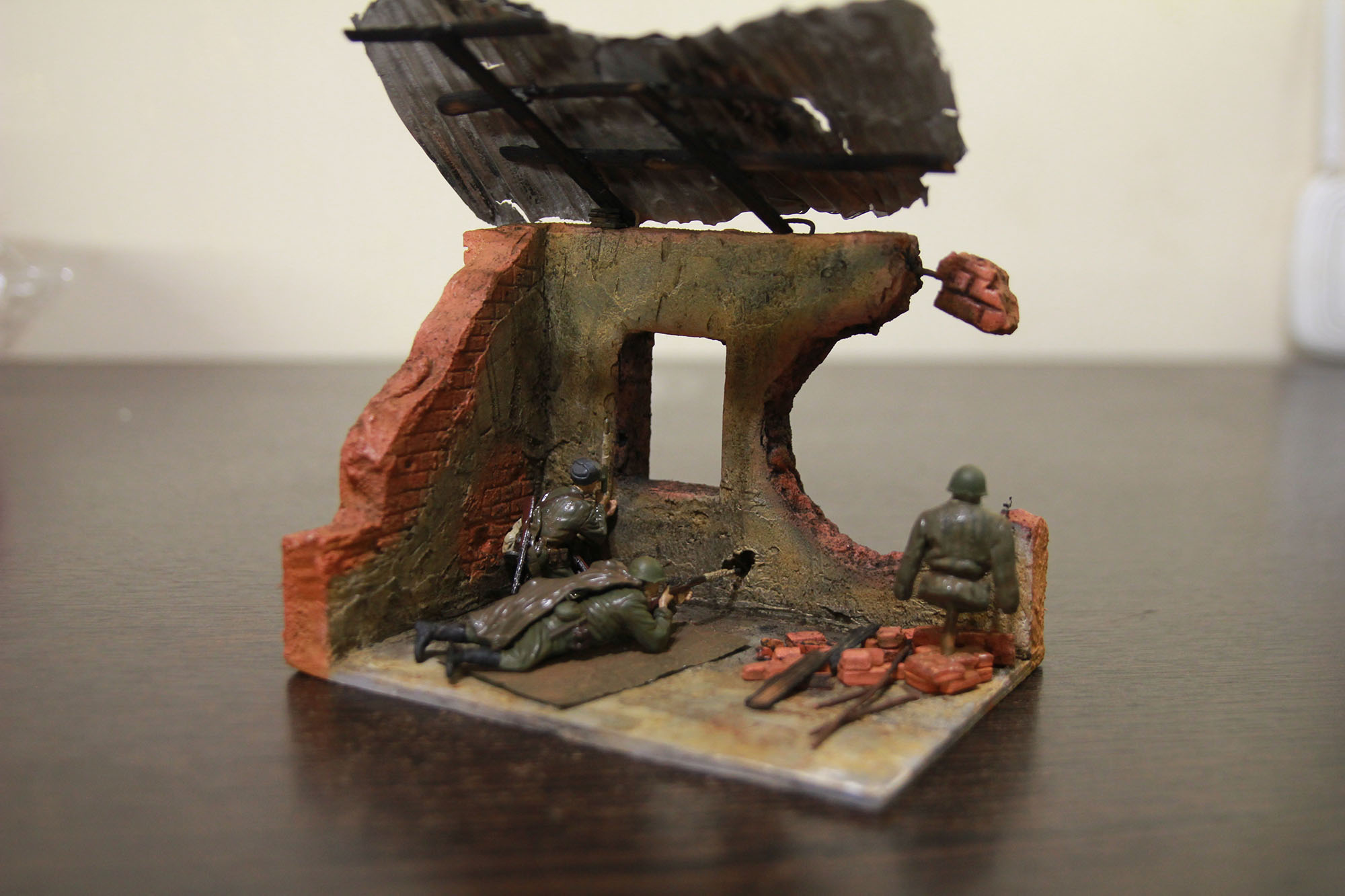 Все кроме арматуры, брезента и фигурок с оружием я решил приклеить к полу