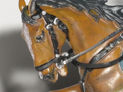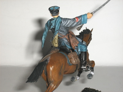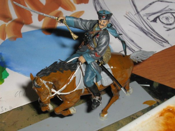 Да - слой базовый. Блеск уже убрал матовым лаком от Модел Мастер. Насчет темляка - это то-же первичный покрас, сейчас пытаюсь его старить. Если кто уже имел опыт старения позолоты, то дайте совета. Серый цвет черкески взят играет из трех цветов: серый, серый нейтральный и светло серый. С голубыми - что-то подобное.