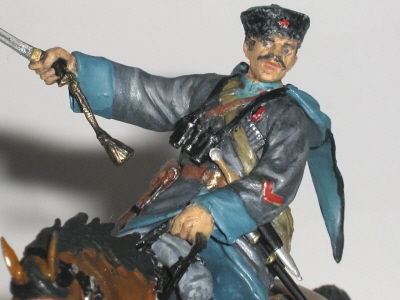 Действительно краски нужны матовые. Серый цвет черкески посветлее, а светло-синий (голубой) поярче. Темляк на шашке не должен быть позолоченный.