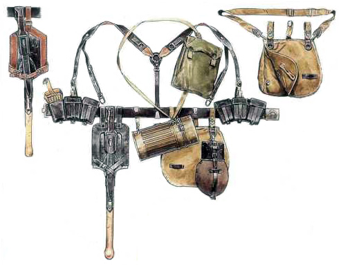 И к тому же лопатка должна висеть на ремне, а не на котелке..