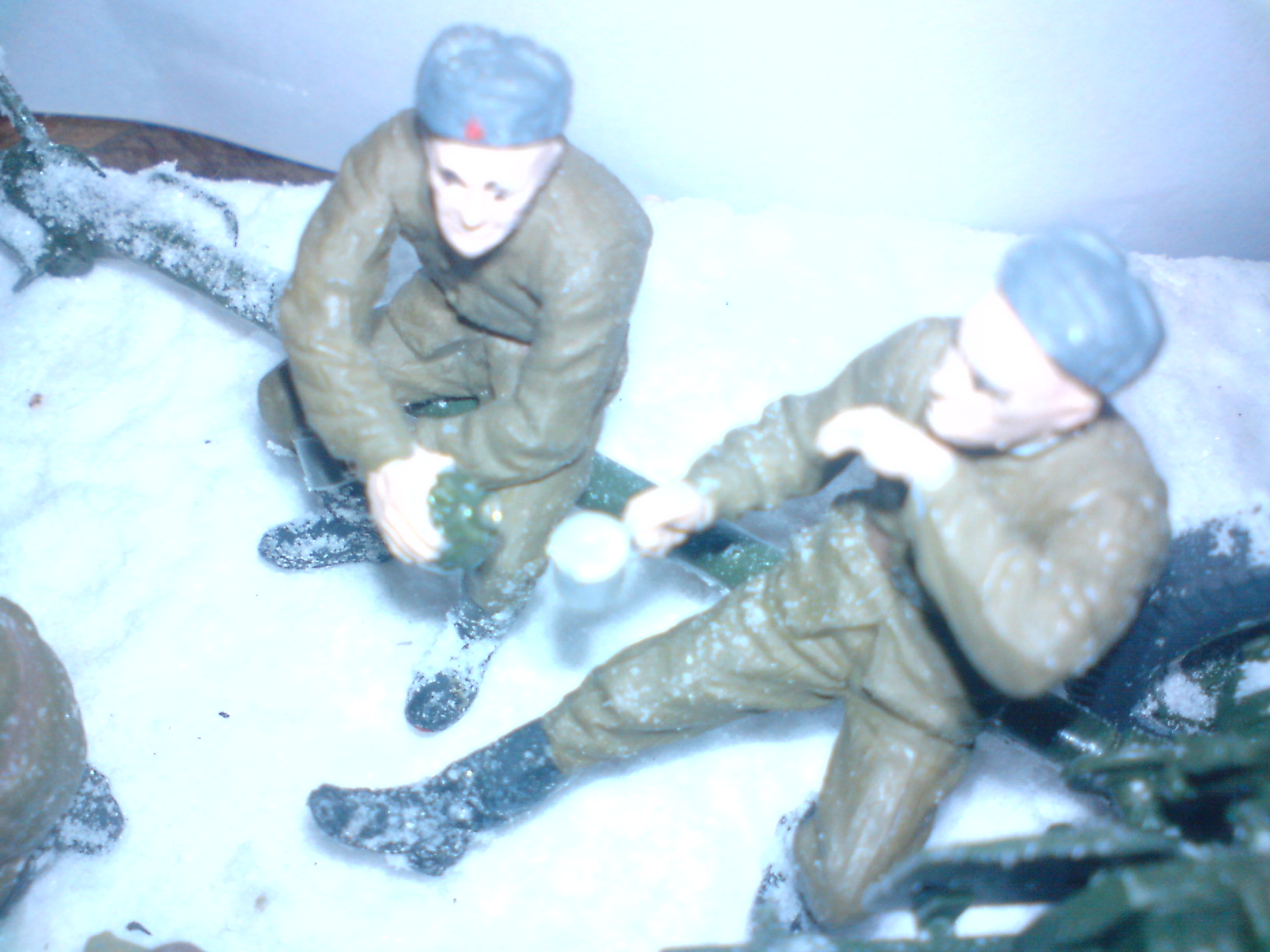 И в результате на диораме над костром висит закопчёная вата.