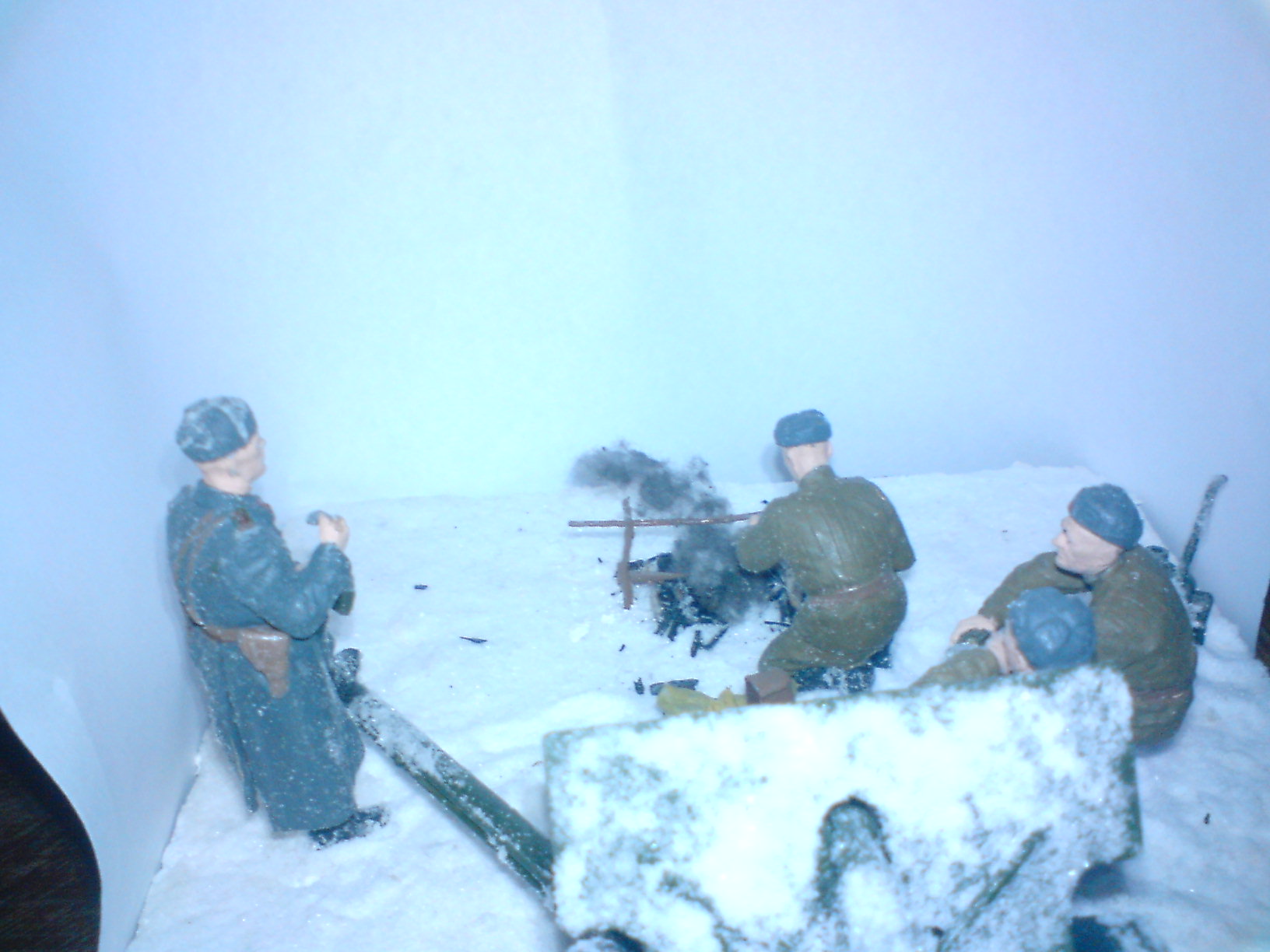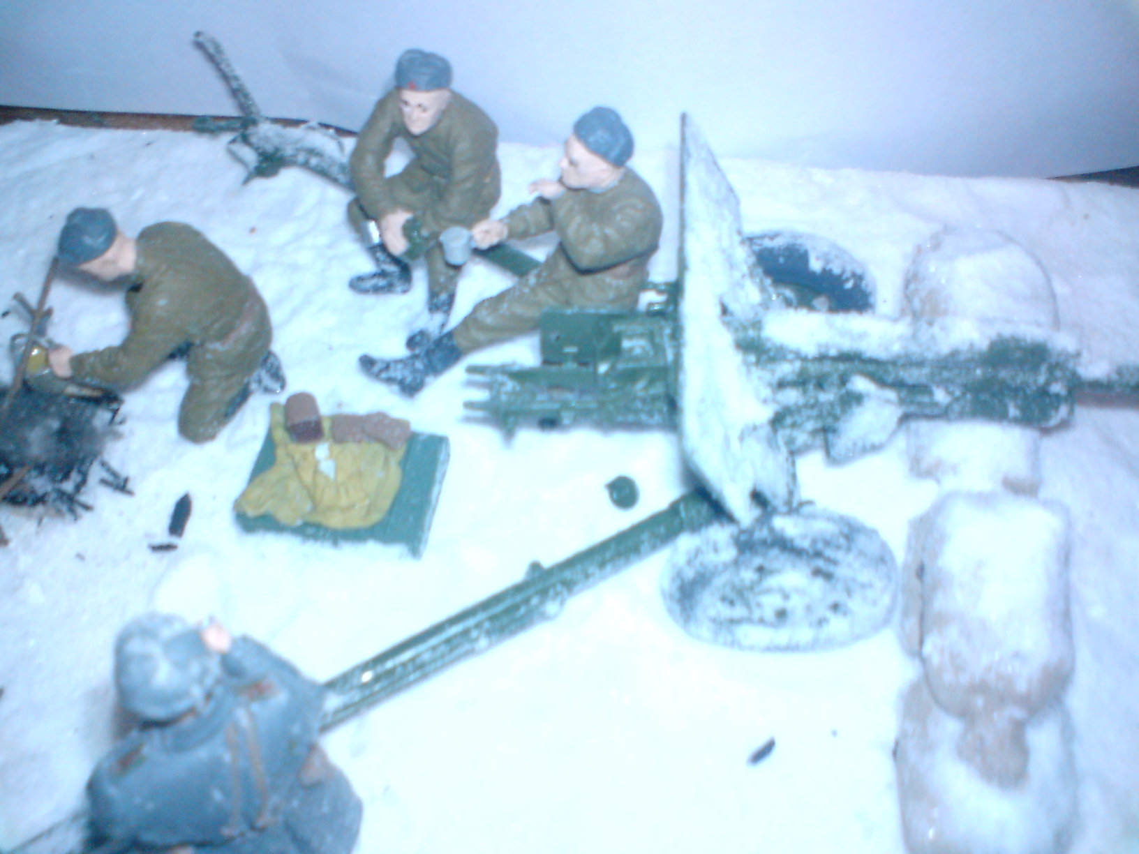 Смотрелось бы лучше если снег был бы утоптан на позиции, следы всякой возни... И мешки действительно не к месту( не понятно от кого и чего они смогут защитить). А в целом нормально сделано, хороший сюжет. С уважением Михаил