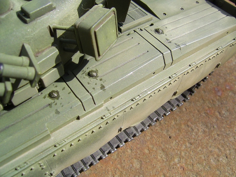 DacotaCat, покраска понравилась, очень пыльненькои без фанатизма, очень, модель - ни разу. Чёрт с ней - с изкропкой, на пилить и лепить можно до бесконечности, но хотя бы установить всё по инструкции и пару раз глянуть на фото можно же... Коллиматорный прицел установлен кверх ногами, а блоки НДЗ на скулах башни перекосило...