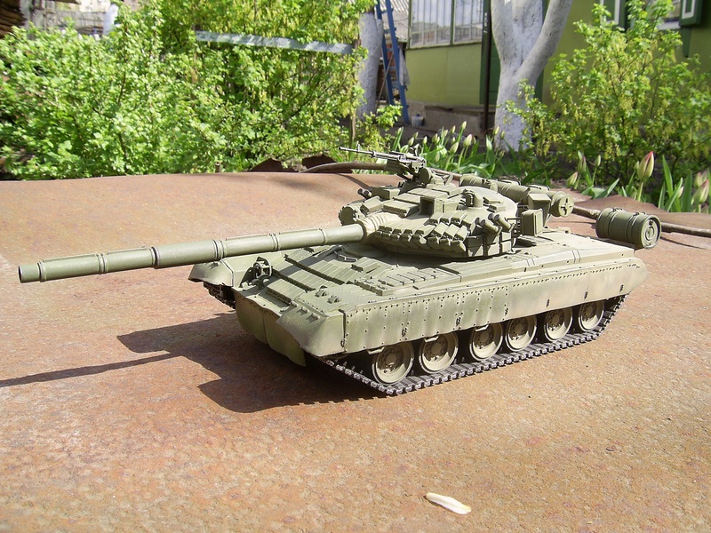 Коллеги, недавно зкончил сборку и покраску модели Т-80 с активной броней от "Звезды". Хочу узнать ваше мнение и советы по качеству покраски. Это обычная изкоробочная сборка, сама модель делалась просто на подарок. Задумана очень простенькая диорама: танк едет по грунтовой дороге где-то в степи. Сама основа и трава еще не готова. Модель красилось хамброловскими эмалями, потом акриловая тамия-смоук и пигменты от тамии.